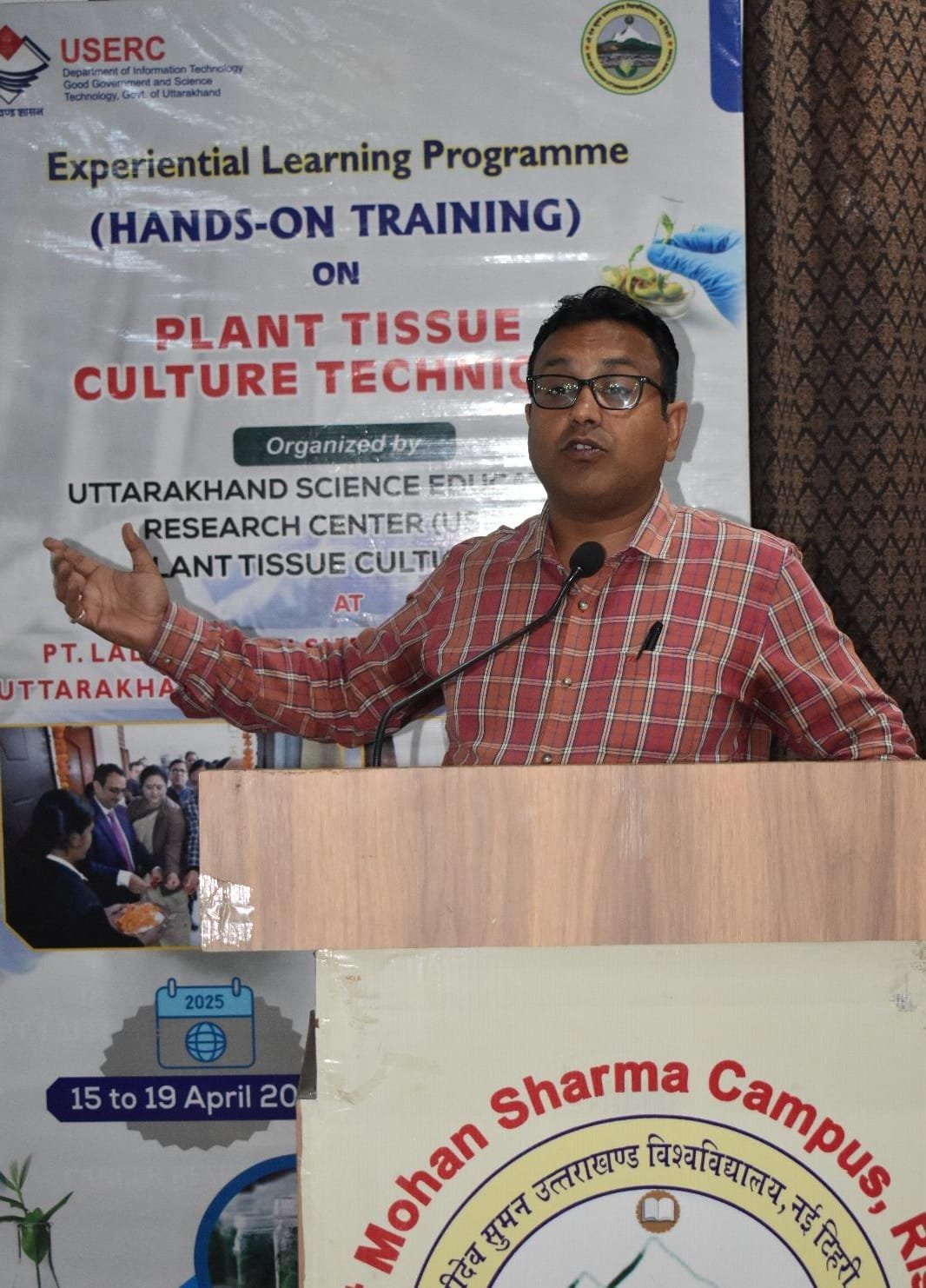 ऋषिकेश : पंडित ललित मोहन शर्मा परिसर, ऋषिकेश में उत्तराखंड विज्ञान शिक्षा एवं अनुसंधान केंद्र (यूसर्क) के तत्वावधान में “पादप उत्तक संवर्धन तकनीकी” पर पांच दिवसीय हैंड्स ऑन ट्रेंनिंग कार्यशाला प्रारंभ हुई। यह कार्यशाला 15 से 19 अप्रैल 2025 तक आयोजित की जाएगी।