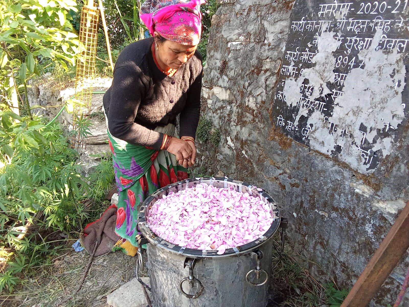 चमोली : सीमांत जनपद चमोली में डेमस्क रोज की खेती किसानों की आजीविका का अच्छा साधन बन रही है। डेमस्क रोज से तैयार गुलाब जल और तेल के विपणन से किसान को फायदा मिलने लगा है। मनरेगा के तहत जोशीमठ ब्लाक के ग्राम पंचायत द्वींगतपोण में 35 परिवारों को डेमस्क रोज उत्पादन से जोडा गया था। इस सीजन में यहां किसानों ने डेमस्क रोज से 400 लीटर से अधिक गुलाब जल और तेल तैयार कर अच्छी आय अर्जित की है। किसानों द्वारा चारधाम यात्रा मार्ग सहित स्वयं सहायता समूहों के माध्यम से गुलाब जल का विपणन किया जा रहा है। गुलाब जल हाथों हाथ बिक रहा है और इससे अच्छी आय मिलने से काश्तकार बेहद खुश है। काश्तकारों ने बताया कि परम्परागत खेती के साथ उन्होंने डेमस्क गुलाब की खेती को भी अपनाया है। गुलाब की खेती को जंगली जानवरों से भी कोई खतरा नहीं रहता है। इसके अलावा असिंचित बंजर भूमि पर भी आसानी से गुलाब की खेती करने से उनको काफी फायदा मिल रहा है। जिला विकास अधिकारी ने बताया कि जनपद में मनरेगा के तहत स्वयं सहायता समूहों को पुष्प वाटिका बनाने के लिए भी प्रेरित किया जा रहा है।