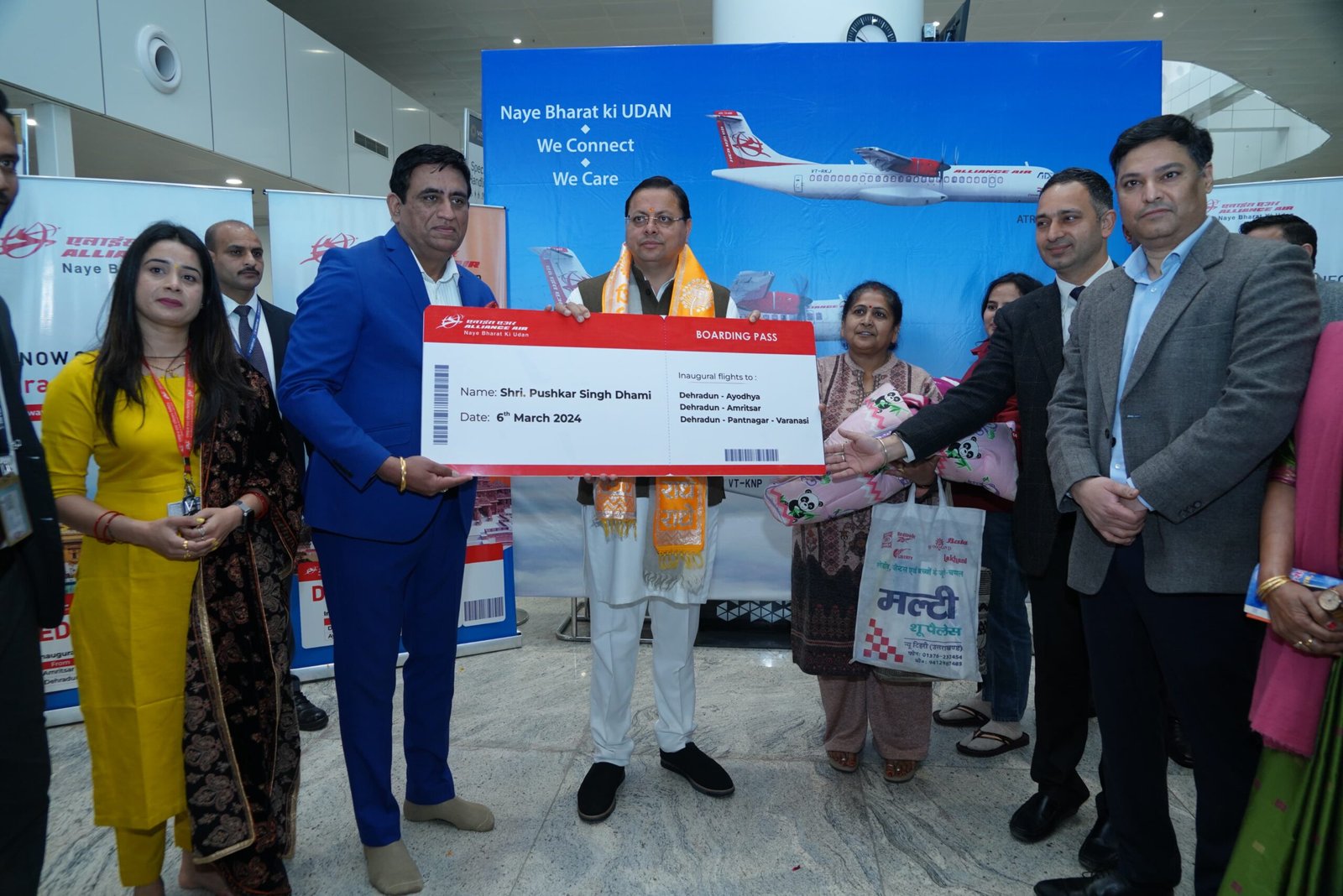 देहरादून : मुख्यमंत्री पुष्कर सिंह धामी ने बुधवार को जौलीग्रांट एयर पोर्ट से देहरादून-अयोध्या, देहरादून-अमृतसर, देहरादून-पंतनगर-वाराणसी के लिये एयर कनेक्टिविटी के अंतर्गत दीप प्रज्जवलित कर, केक काटकर तथा फ्लैग ऑफ़ कर एलाइंस एयर की उड़ानों का शुभारम्भ किया। मुख्यमंत्री ने इस मौक़े पर आयोजित कार्यक्रम को सम्बोधित करते हुए कहा कि हमारा यह प्रयास है कि सम्पूर्ण उत्तराखंड के अंदर लोगों का आवा-गमन सुविधाजनक, सरल व आसान हो, इसके लिये हम निरंतर प्रयासरत हैं तथा देश के लोग उत्तराखण्ड के विभिन्न स्थानों में आसानी से आ जा सकें, जिसके लिये हम लगातार कार्य कर रहे हैं।