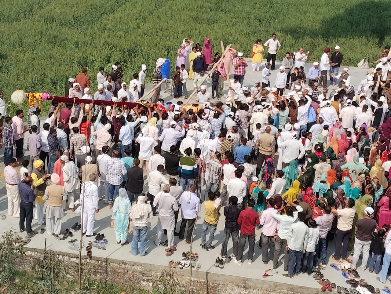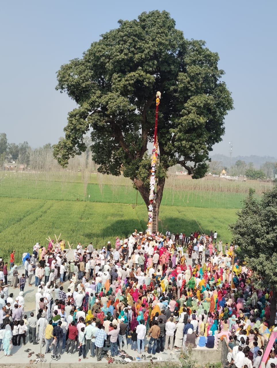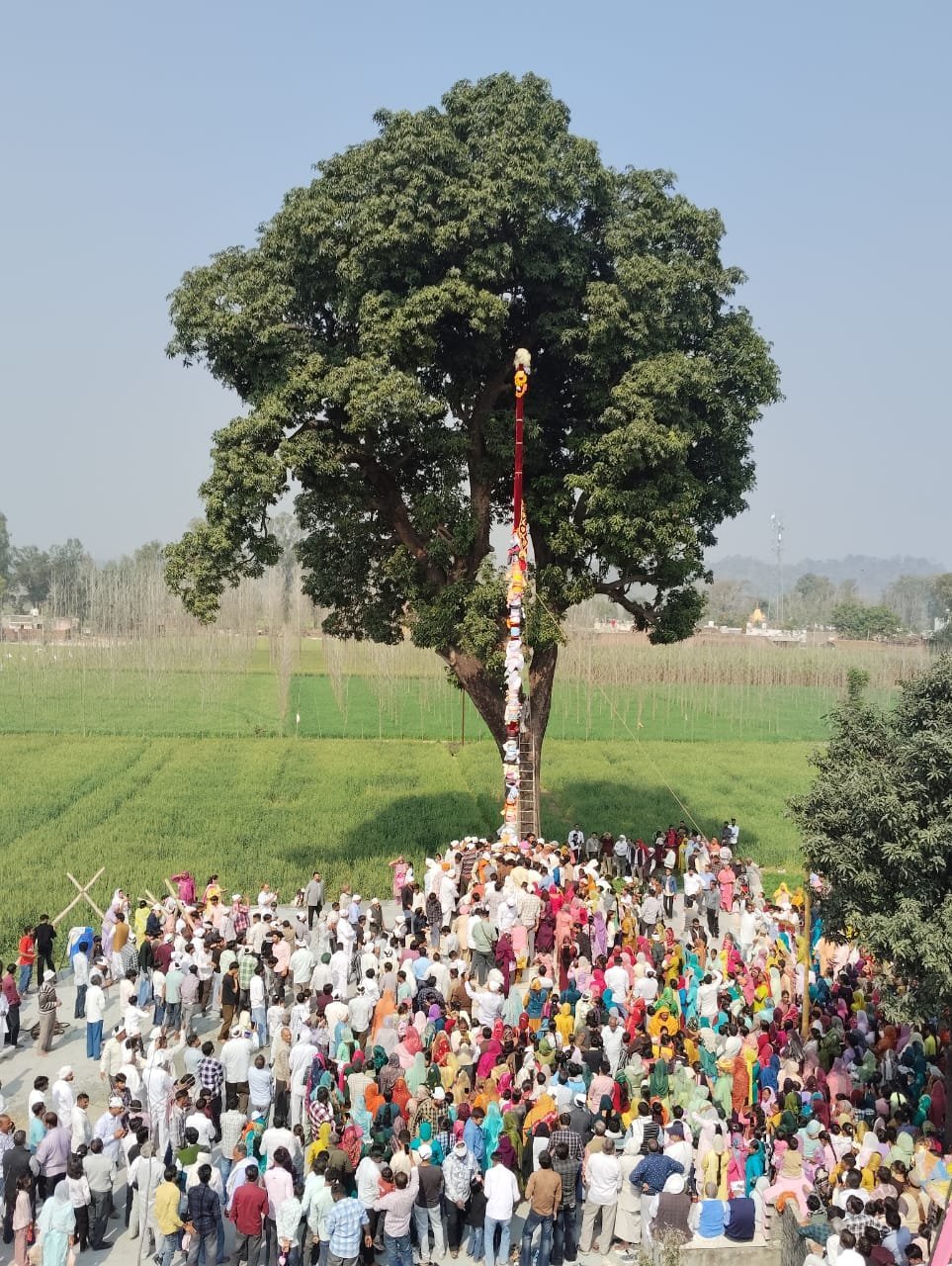 सुबह 9 बजे दरबार श्री गुरु राम राय जी महाराज से रवाना हुआ जत्था दोपहर 12ः10 बजे अराईंयावाला पहुंचा। परंपरा के अनुसार पुराने श्री झंडे जी को पूरे सम्मान एवम् भक्तिभाव के साथ उतारा गया। तत्पश्चात दूध, दही, घी, मक्खन, गंगाजल और पंचगव्य से पवित्र स्नान कराकर 60 फीट ऊंचे श्री झण्डे जी का हजारों श्रद्धालुओं की उपस्थिति में भव्य आरोहण किया गया। इस दिव्य दृश्य के दौरान श्रद्धालु गुरु महाराज की महिमा के जयकारों से वातावरण गुंजायमान करते रहे। अनेक श्रद्धालु भाव-विभोर होकर नतमस्तक हुए। कार्यक्रम के उपरांत प्रसाद एवं लंगर का वितरण किया गया, जिसमें अपार संगत ने श्रद्धापूर्वक सहभागिता की।