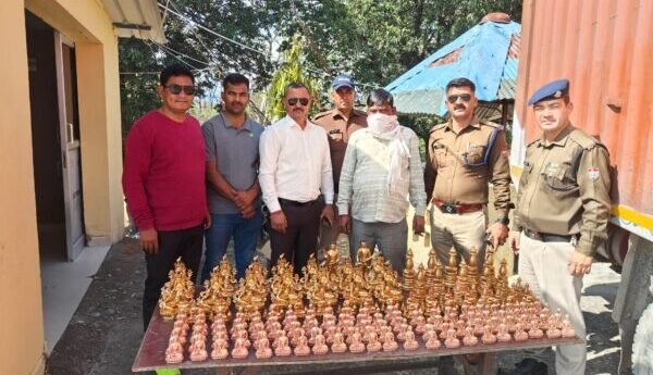 उपरोक्त कैंटर जिसे पिछली साइड से पूर्णता लॉक्ड किया हुआ था को खोलकर चैक किया गया तो कैंटर के पिछले हिस्से से 01 गत्ते की पेटी और काले रंग के बड़े बैग में से पीतल / तांबा धातु की भगवान बुद्ध की मूर्तियां, हिंदू देवी की प्रतिमाएं, बौद्ध स्तूप, कुल- छोटी-बड़ी 158 मूर्तियां बरामद हुई। जिस संबंध में वाहन चालक से पूछताछ की गई तो, इसके द्वारा कोई संतोषजनक उत्तर नहीं दिया गया और न ही बरामदा उपरोक्त सामान के सम्बन्ध में कोई वैध कागजात मौके पर प्रस्तुत किए गये । बरामदा माल की अंतरराष्ट्रीय कीमत- लगभग ₹10 लाख होना प्रकाश में आया है। बरामद सामान व कैंटर को कब्जे पुलिस लेकर सीजर रिपोर्ट तैयार की गई एवं नियमानुसार आवश्यक वैधानिक कार्यवाही हेतु समस्त बरामदा माल मय सीजर रिपोर्ट व वाहन चालक नवरत्न उपरोक्त को कस्टम विभाग, बनबसा के सूपुर्द किया गया ।