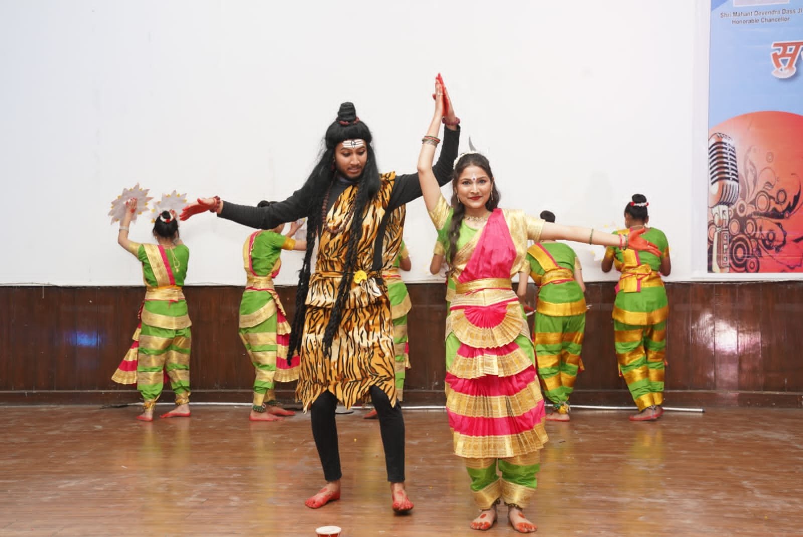 स्कूल ऑफ मेनेजमेंट एण्ड कामर्स स्टडीज़ की हर्षिता कंडारी एण्ड ग्रुप के ग्रुप डांस ने समा बांध दिया। मां भवानी द्वारा रक्तबीज के बध का मंचन देखकर श्रोतागण भावविभोर हो गए। स्कूल ऑफ ह्यूमैनिटीज एण्ड सोशल साइंसेज़ की ईशा शर्मा ने सोलो डांस प्रस्तुति के माध्यम से महिला जीवन की विभिन्न भूमिकाओं एवं जिम्मेदारियों को चरितार्थ किया। मोनू रोहिला ने शिव तांडव सोलो प्रस्तुति से माहोल को शिवमई बना दिया। स्कूल ऑफ कम्प्यूटर एप्लीकेशन एण्ड इंफाॅरमेशन टेक्नेलाॅजी के छात्र जितेन्द्र बालीवुड गीतों की मैलोड़ी पर शानदार प्रस्तुति से युवा धड़कनों को और तेज़ कर दिया। स्कूल ऑफ ह्यमैनिटीज की आकृति एण्ड ग्रुप ने गुजराती फ्यूजन एवं टाॅलीवुड गीतों पर देश के विभिन्न संस्कृतियों को मंच पर प्रस्तुत किया। डाॅ कुमुद सकलानी, मनोज तिवारी, मुख्य कुलानुशासक एवं प्रवक्ता, एसजीआरआरयू, डाॅ पूजा जैन एवं डाॅ दिव्या जुयाल ने निर्णायक मण्डल में अहम भूमिका निभाई।