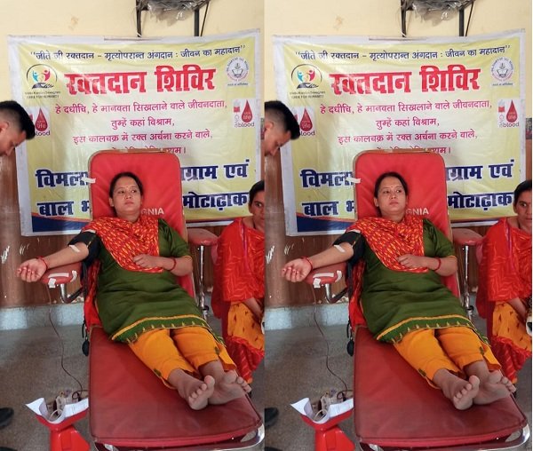 कोटद्वार। विमला कुंदन सेवाग्राम ट्रस्ट की ओर से रविवार को अंगदानी स्वर्गीय चंद्रकांता रावत एवं स्वर्गीय कुणाल रावत की स्मृति में आयोजित स्वैच्छिक रक्तदान शिविर में 69 रक्तदानियों ने रक्तदान किया। श्री महंत इंद्रेश हॉस्पिटल देहरादून के सहयोग से मोटाढांग स्थित बाल भारती सीनियर सेकेंडरी स्कूल में आयोजित स्वैच्छिक रक्तदान शिविर में 104 रक्तदानी रक्तदान करने पहुँचे जिसमें 25 लोग रक्तदान करने में असफल रहे और 69 लोगों ने सफलता पूर्वक रक्तदान किया। कार्यक्रम के दौरान आधारशिला रक्तदान फाउंडेशन ने अंगदानी परिवार के मुख्य गिरिराज सिंह रावत एवं उनके परिवार को अंगवस्त्र उड़ाकर तथा स्मृति चिन्ह भेंट कर सम्मानित किया। वहीं रक्तदान शिविर के दौरान मोहन फाउंडेशन ने रक्तदानियों को अंगदान के प्रति जागरूक किया जिसमें 30 रक्तदानियों ने अंगदान के लिए संकल्पित होकर संकल्प पत्र भरा। मोहन फाउंडेशन के प्रोजेक्ट लीडर संचित अरोड़ा ने जानकारी दी कि अंगदान के लिए संकल्प पत्र भरने वाले लोगो को बाद में कार्ड निर्गत किया जायेगा । कार्यक्रम में मृत्यु उपरांत नेत्रदान करने वाले स्वर्गीय मदन मोहन सुंद्रियाल के पुत्र विजय सुंद्रियाल व स्वर्गीय अशोक भाटिया के भाई संजय भाटिया को सम्मानित किया गया ।
