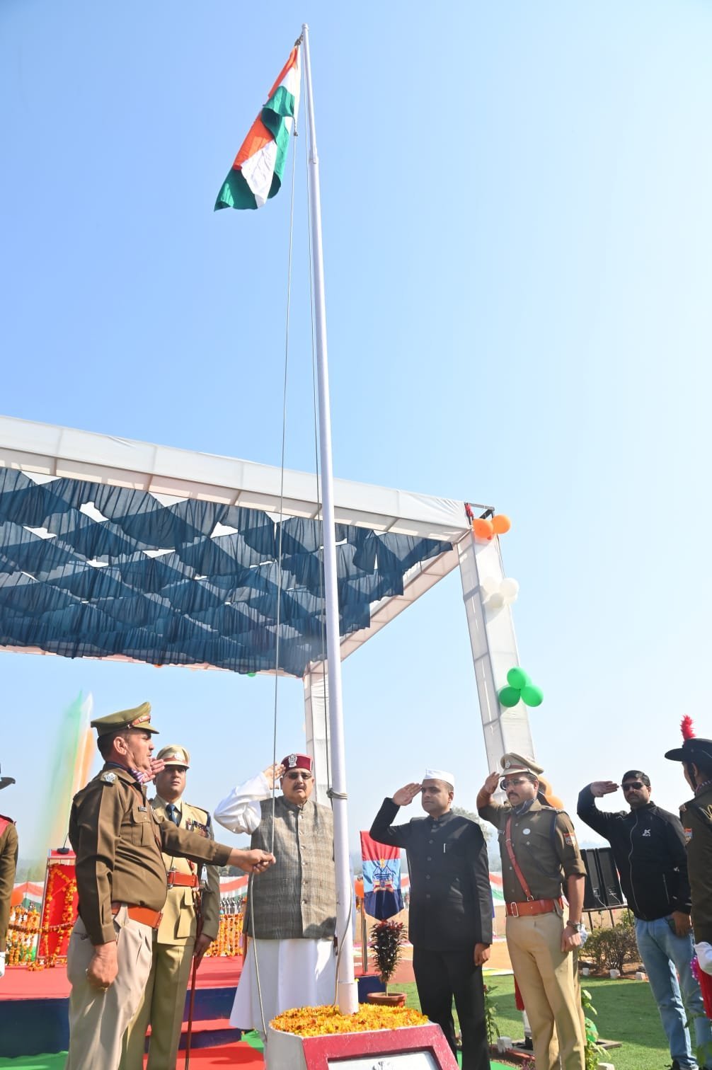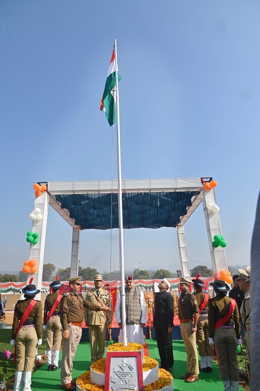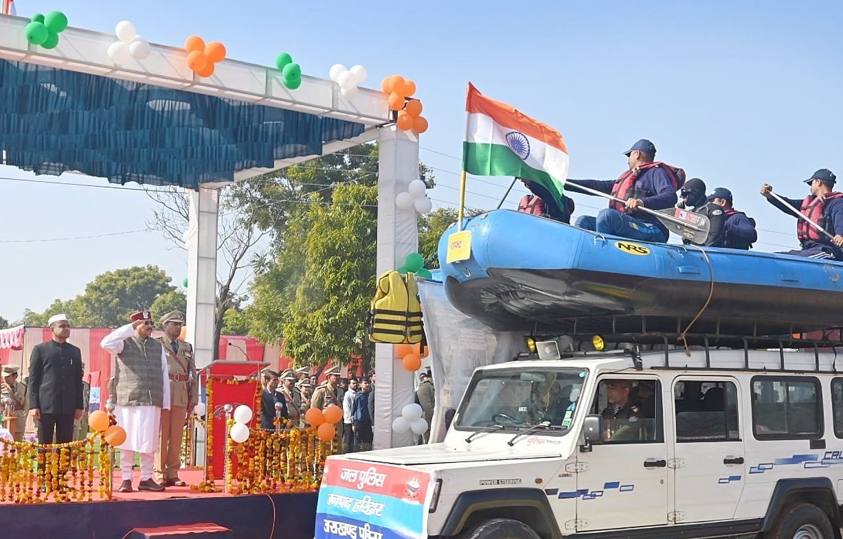 हरिद्वार : आज 77वें गणतंत्र दिवस के अवसर पर आज पुलिस लाइन रोशनाबाद हरिद्वार स्थित परेड़ ग्राउंड में शानदार कार्यक्रम आयोजित किया गया। जनपद आगमन पर जिलाधिकारी मयूर दीक्षित एवं वरिष्ठ पुलिस अधीक्षक हरिद्वार प्रमेंद्र सिंह डोबाल द्वारा पुष्पगुच्छ देकर कार्यक्रम के मुख्य अतिथि पर्यटन, सांस्कृतिक व सिंचाई मंत्री (प्रभारी मंत्री जनपद हरिद्वार) सतपाल महाराज का स्वागत किया गया। मुख्य अतिथि द्वारा राष्ट्रीय ध्वज फहराने एवं राष्ट्रीय गान के पश्चात परेड़ कमांडर CO अभिनव चौधरी द्वारा सलामी दी गई व मुख्य अतिथि द्वारा सम्पूर्ण परेड का निरीक्षण करते हुए जवानों का होसला बढाया गया।