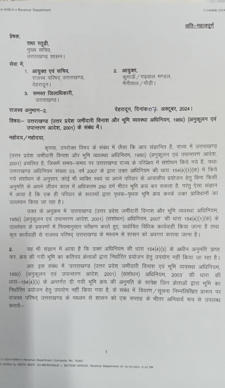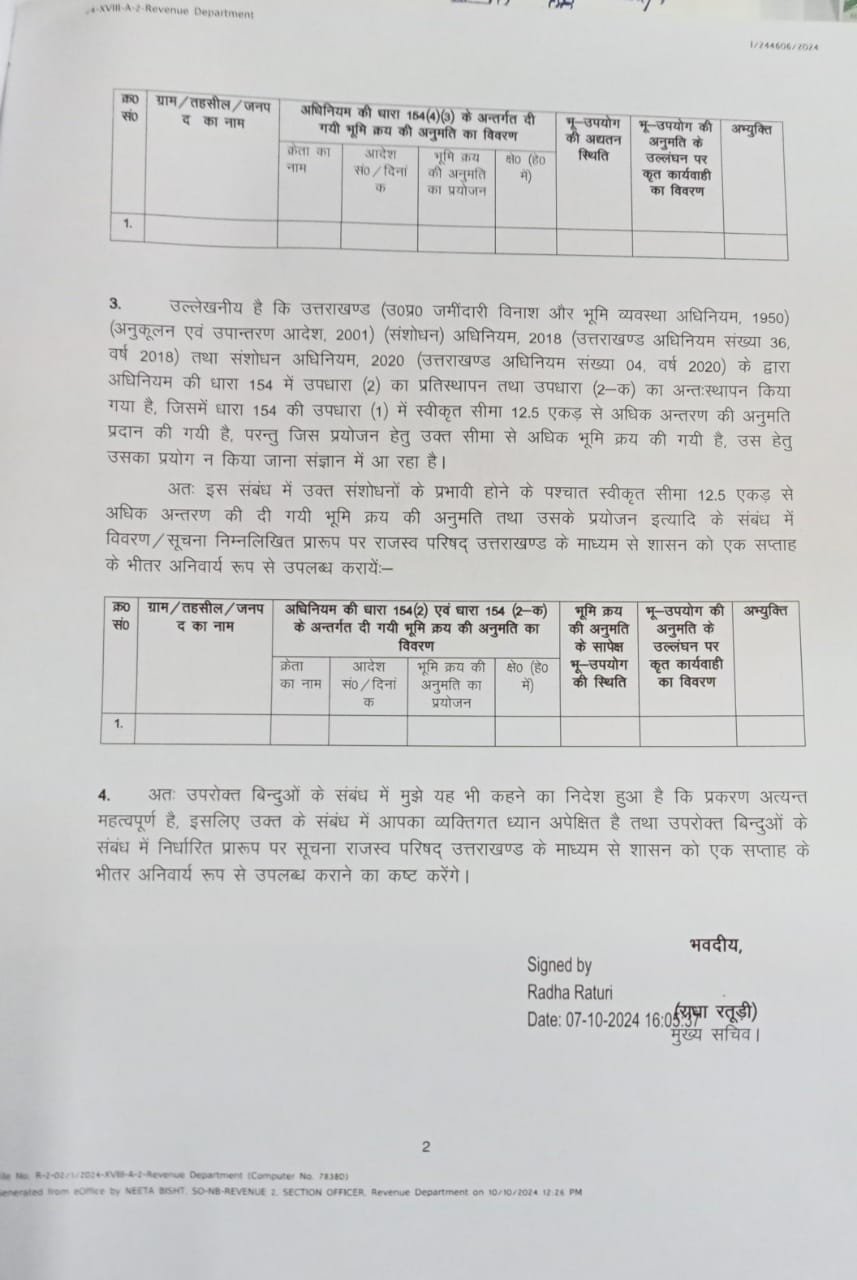 धामी सरकार का भू कानून को लेकर एक बड़ा कदम, अब खुलेगा 250 वर्ग मीटर से ज्यादा जमीन का राज, 07 दिन के भीतर मांगी रिपोर्ट