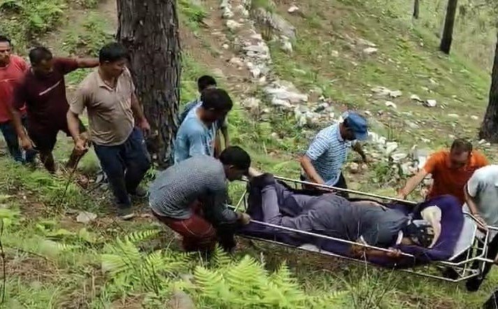 जंगल में पैर फिसलने से खाई में गिरा युवक, गंभीर घायल, डंडी के सहारो पहुंचाया सड़क तक