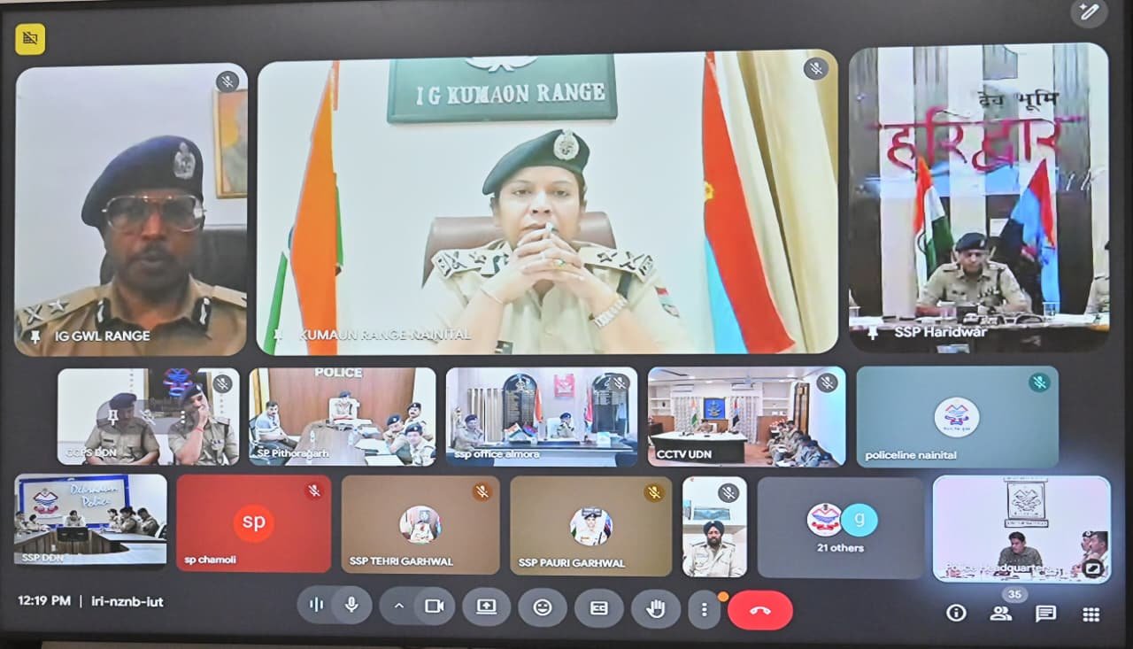 देहरादून : अपर पुलिस महानिदेशक अपराध एवं कानून व्यवस्था उत्तराखण्ड वी. मुरुगेशन द्वारा आज वीडियो कॉन्फ्रेंसिंग के माध्यम से गढ़वाल एवं कुमाऊँ रेंज सहित समस्त जनपदों के वरिष्ठ/पुलिस अधीक्षकों के साथ लम्बित विवेचनाओं एवं 05 सितम्बर 2025 को बारावफात पर्व की सुरक्षा व्यवस्था के सम्बन्ध में जनपदवार विस्तृत समीक्षा/चर्चा की गई।