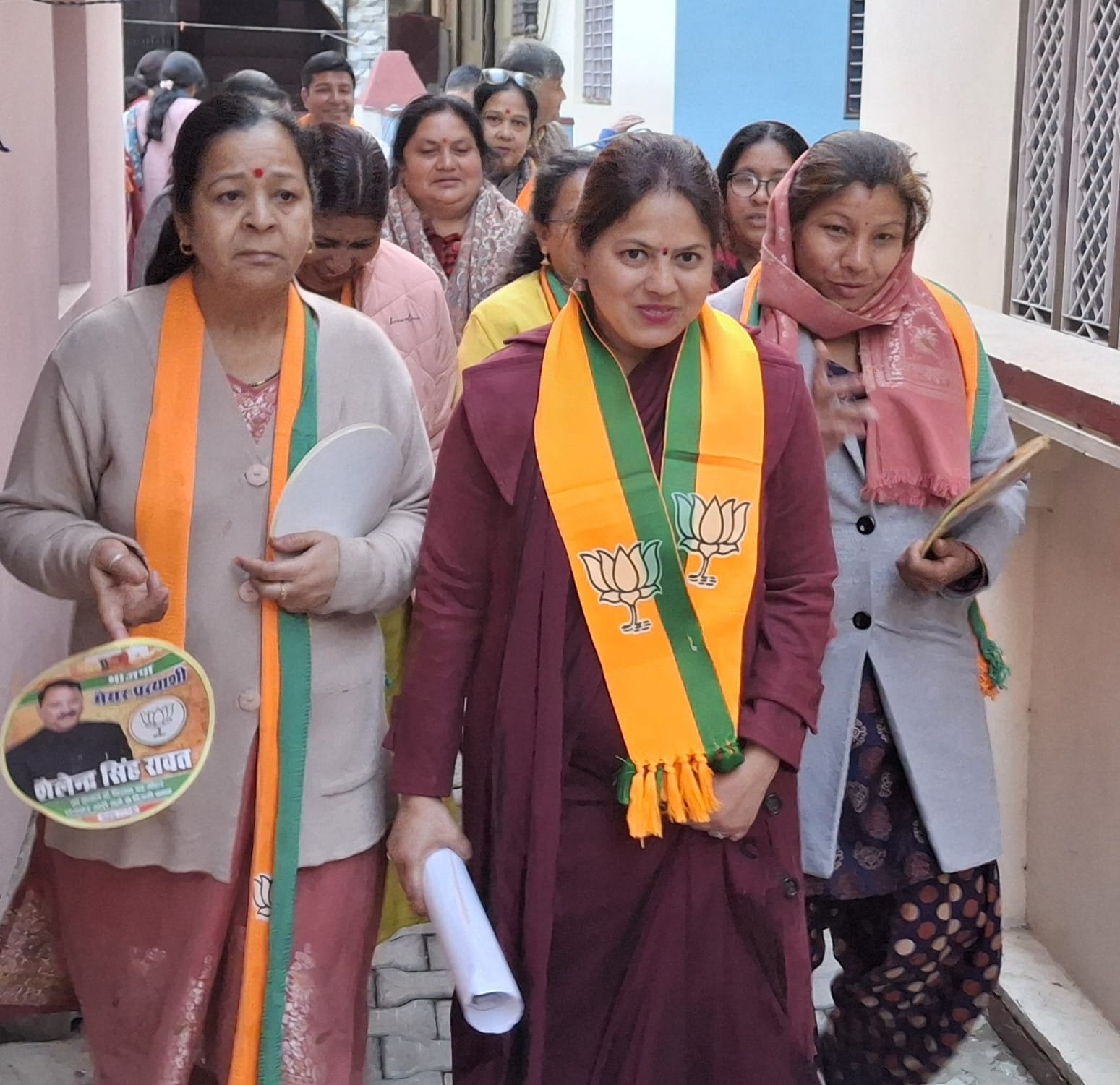 निकाय चुनाव के प्रचार-प्रसार के दौरान मेयर पद प्रत्याशी पूर्व विधायक शैलेंद्र सिंह रावत और उनकी पत्नी अनिता रावत अलग-अलग वार्डों में पहुंचकर अपने और वार्ड प्रत्याशियों के पक्ष में मतदान करने की अपील की है। वार्ड प्रत्याशी पंकज भाटिया ने बताया कि प्रदेश के मुख्यमंत्री पुष्कर सिंह धामी ने कोटद्वार आगमन के दौरान जनसभा को संबोधित करते हुए सभी वार्ड प्रत्याशियों के पक्ष में मतदान करने की अपील की थी। जिसके बाद उन्होंने ने भी प्रचार-प्रसार में ताकत झोंक दी है। जनसंपर्क के दौरान मेयर पद प्रत्याशी पत्नी अनिता शर्मा ने कहा कि पूरे नगर निगम क्षेत्र को स्वच्छ और सुंदर बनाया जाएगा। जनता को भी सरकार की कई जन कल्याणकारी योजनाओं का लाभ मिल पाएगा। उन्होंने मतदाताओं से मेयर और वार्ड प्रत्याशी पद पर भाजपा को मत देने की अपील की है। उधर, जनसंपर्क के दौरान वार्ड प्रत्याशी पंकज भाटिया को मिल रहे जनसमर्थन से बागियों में हलचल मची हुई है। जनसंपर्क के दौरान अनिता आर्य, सुनीता कोटनाला, प्रीति कुलाश्री, कृष्णा बहुगुणा, रानी नेगी, दीपाली भाटिया, आकाश भाटिया, आकाश फूल, उमा नेगी, विपिन चावला आदि मौजूद रहे।