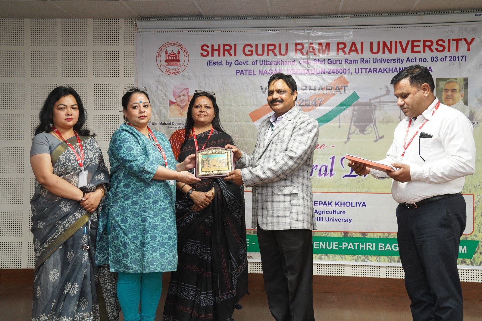 स्कूल ऑफ़ एग्रीकल्चर की संकायाध्यक्ष प्रोफेसर प्रियंका बनकोटी ने कहा कि श्री गुरु राम राय विश्वविद्यालय उत्तराखंड का एकमात्र निजी विश्वविद्यालय है जिसे आईसीएआर की मान्यता प्राप्त हुई है। उन्होंने कहा कि हमारे छात्र राष्ट्रीय और अंतरराष्ट्रीय स्तर पर कृषिगत कार्यों में संलग्न हैं और देश के विकास में सहभागी बन रहे हैं, जो विश्वविद्यालय के लिए गर्व की बात है। कार्यक्रम के समन्वयक डॉ हिमांकी डबराल और डॉक्टर मोइनुद्दीन रहे। इस अवसर पर आईक्यूएसी डायरेक्टर प्रोफेसर सुमन बिज, मुख्य परीक्षा नियंत्रक प्रोफेसर संजय शर्मा, डीन स्टूडेंट वेलफेयर प्रोफेसर कंचन जोशी, संकायाध्यक्ष स्कूल आफ ह्यूमैनिटीज एंड सोशल साइंसेज प्रोफ़ेसर गीता रावत, डॉ. मोईनूदद्दीन चिश्ती, डॉ हिमांकी सहित विश्वविद्यालय के सभी स्कूलों के संकायाध्यक्ष, विभागाध्यक्ष, शिक्षकगण एवं सैंकड़ों छात्र मौजूद रहे।