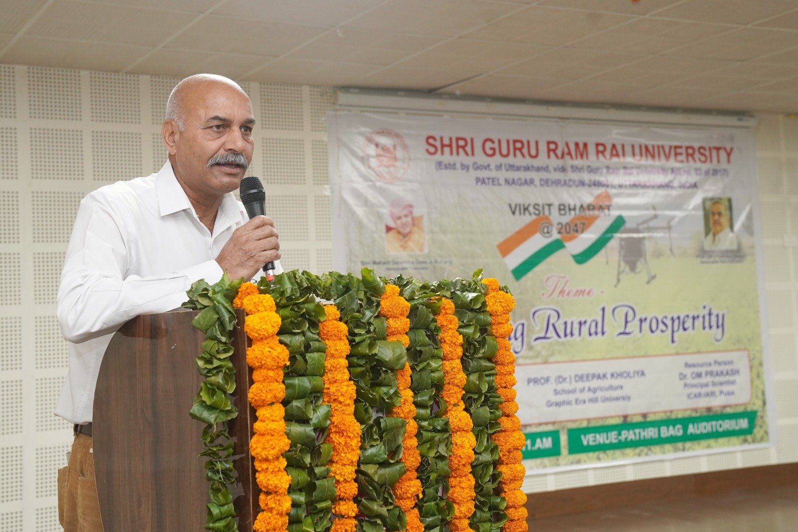 देहरादून : श्री गुरु राम राय विश्वविद्यालय में ग्रामीण समृद्धि को बढ़ावा देने और विकसित भारत में युवाओं की भागीदारी को समझते हुए विकसित भारत @2047 की थीम पर एक दिवसीय कार्यशाला का आयोजन किया गया। कार्यशाला का शुभारंभ श्री गुरु राम राय विश्वविद्यालय के कुलसचिव डॉ अजय कुमार खंडूड़ी , कार्यक्रम की नोडल ऑफिसर प्रोफेसर मालविका कांडपाल, मुख्य वक्ता आईसीएआर पूसा नई दिल्ली के वैज्ञानिक डॉक्टर ओम प्रकाश, ग्राफिक एरा यूनिवर्सिटी देहरादून के स्कूल ऑफ़ एग्रीकल्चर के प्रोफेसर डॉ दीपक खोलिया और श्री गुरु राम राय विश्वविद्यालय की स्कूल आफ एग्रीकल्चर की संकाय अध्यक्ष प्रोफेसर प्रियंका बनकोटी ने दीप प्रज्वलित कर किया। कार्यशाला के सफल आयोजन के लिए विश्वविद्यालय के कुलाधिपति श्रीमहंत देवेंद्र दास जी महाराज और कुलपति प्रोफेसर यशबीर दीवान ने आयोजकों को शुभकामनाएं प्रेषित की।