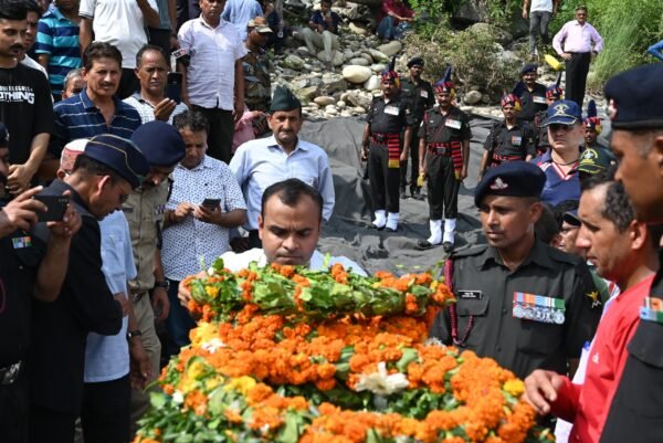 इस मौके पर एसडीएम देवप्रयाग सोनिया पंत सहित सेना और पुलिस के जवान, अधिकारी एवं विशाल जन समूह मौजूद रहा। वहीं वीर शहीद विनोद सिंह भंडारी वर्ष 2011 में सेना में भर्ती हुए। उनके परिवार में माता-पिता, पत्नी, 04 साल का बेटा और 4 माह की बेटी है। वह परिवार का अकेला बेटा था तथा उनकी तीन बहने हैं। वर्तमान में उनका परिवार भानियावाला देहरादून में रहता है, जहां से शहीद विनोद सिंह भंडारी के पार्थिव शरीर को पूरे सैन्य सम्मान के साथ पूर्णानंद घाट पर लाया गया, जहां कैबिनेट/जनपद प्रभारी मंत्री प्रेम चंद अग्रवाल, कैबिनेट मंत्री सुबोध उनियाल सहित अन्य गणमान्यों द्वारा शहीद विनोद सिंह भंडारी को पुष्प चक्र अर्पित कर श्रद्धांजलि दी गई।
