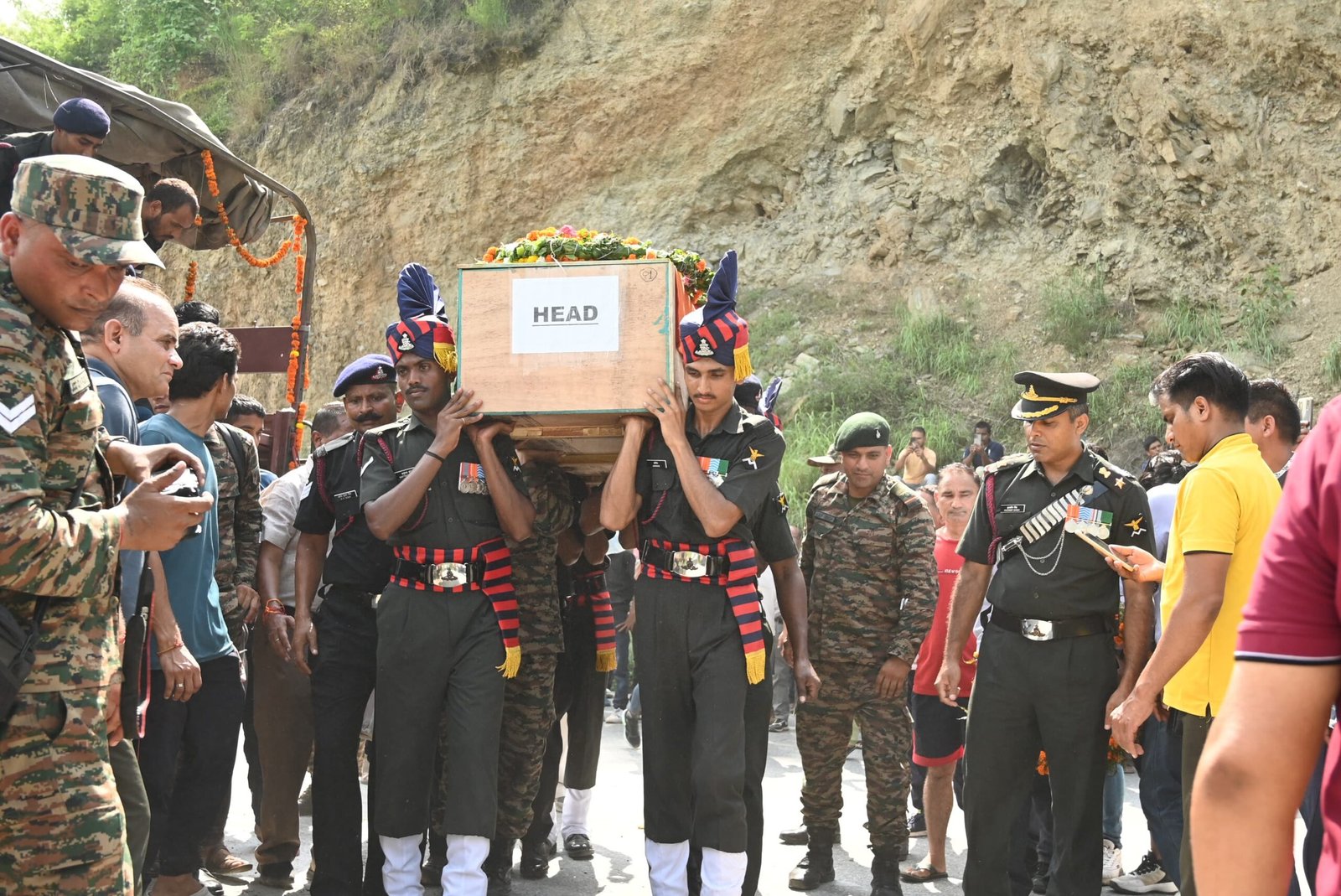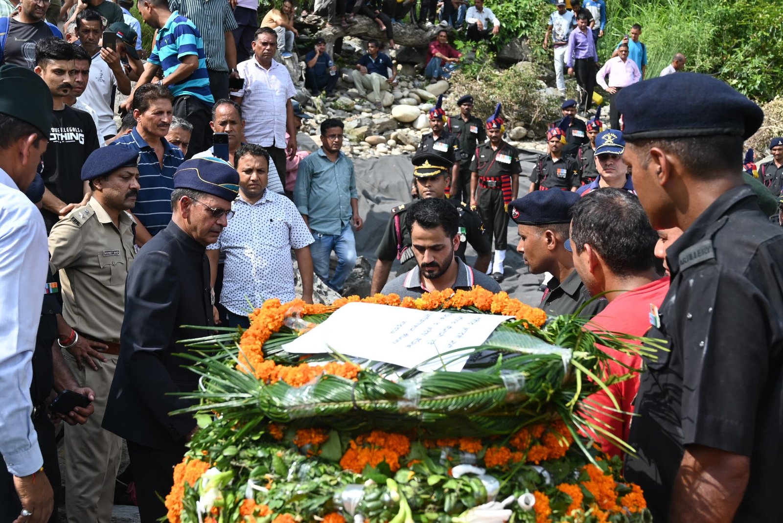 वीर जवान आदर्श नेगी के पार्थिव शरीर को पूरे सैन्य बल के साथ उनके पैतृक गांव थाती (डागर), कीर्तिनगर लाया गया। तत्पश्चात पार्थिव शरीर को अलकनंदा नदी के बासापाणी घाट मलेथा में लाया गया, जहां विधायक देवप्रयाग विनोद कंडारी, पूर्व मंत्री मंत्री प्रसाद नैथानी, डीएम मयूर दीक्षित, एसएसपी नवनीत सिंह भुल्लर, जिलाध्यक्ष भाजपा राजेश नोटियाल, परिजन, जिला सैनिक कल्याण अधिकारी योगेंद्र सिंह सहित अन्य गणमान्यों द्वारा वीर जवान के पार्थिव शरीर पर पुष्प चक्र अर्पित कर श्रद्धांजलि दी गई। सैनिकों की टुकड़ी ने हवाई फायरिंग कर बंदूकों की सलामी देकर शहीद आदर्श नेगी को अंतिम विदाई दी। शहीद आदर्श नेगी को परिजनों द्वारा मुखाग्नि दी गई।