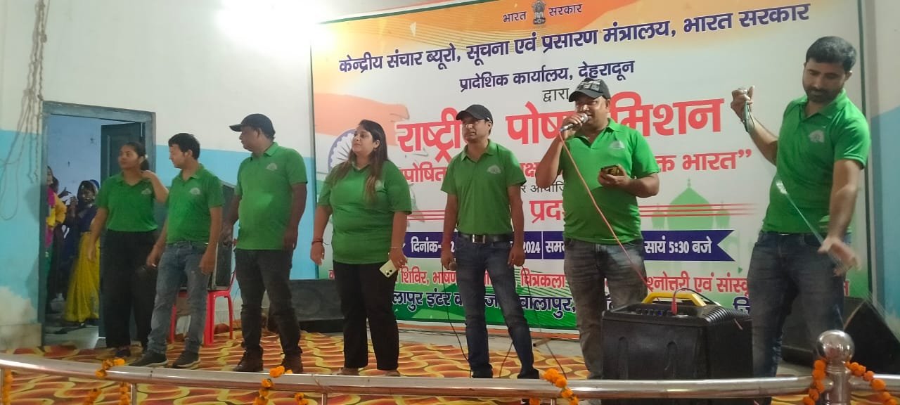 हरिद्वार : भारत सरकार के सूचना प्रसारण मंत्रालय केंद्रीय संचार ब्यूरो शाखा देहरादून के माध्यम से राष्ट्रीय पोषण मिशन के तहत देशभर में मनाई जा रहे पोषण माह के अंतर्गत ज्वालापुर इंटर कॉलेज के प्रांगण में पोषण दृश्य चित्र प्रदर्शनी का आयोजन किया जा रहा था जिसका शुक्रवार को रंगारंग सांस्कृतिक कार्यक्रमों के साथ समापन हुआ सामापन। इस अवसर पर ब्लॉक बहादराबाद के ग्राम अजीतपुर के प्रधान प्रखर कश्यप मुख्य अतिथि, शाहपुर शीतला खेड़ा के ग्राम प्रधान दीपक सैनी, जिया पोता के ग्राम प्रधान कृष्ण पाल विशिष्ट अतिथि के रूप में उपस्थित रहे ।
