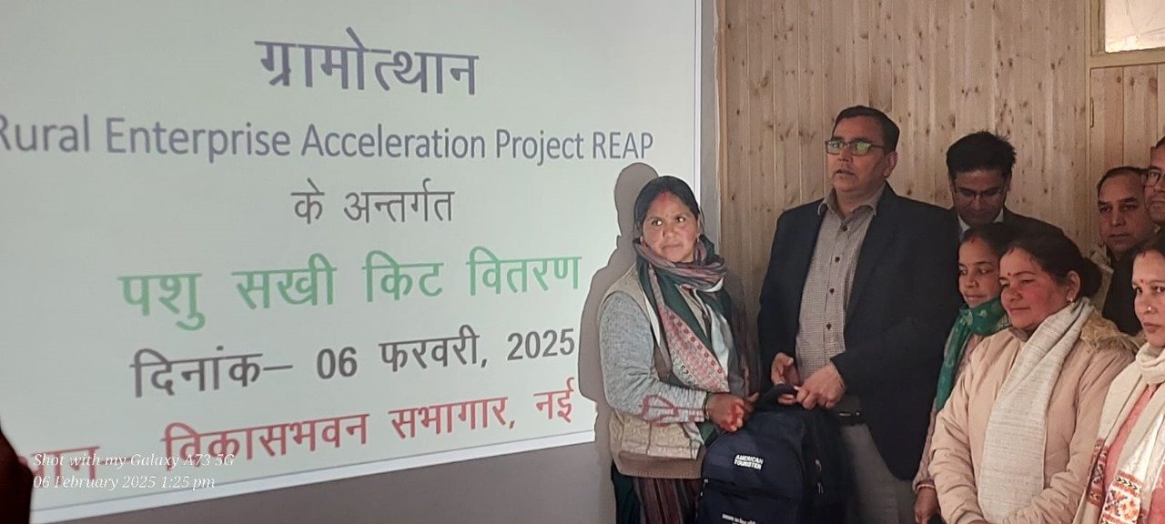 टिहरी : मुख्य विकास अधिकारी डॉ. अभिषेक त्रिपाठी ने गुरूवार को विकास भवन सभागार नई टिहरी में आयोजित कार्यकम में ग्रामोत्थान रीप परियोजना के अन्तर्गत प्रशिक्षित पशु सखियों को किट वितरित की। जिला परियोजना प्रबन्धक रीप ने बताया कि जनपद में परियोजना के अन्तर्गत 28 प्रशिक्षित पशु सखियां तैयार की जा चुकी हैं, जो कि पशुपालन विभाग के पशु चिकित्साधिकारियों के देख-रेख में पशुओं के प्राथमिक उपचार, पशुचारा प्रबन्धन, पशु स्वास्थ्य प्रबन्धन, पशु टीकाकरण, पशु कान टैगिंग आदि के साथ ही पशु बीमा, पशु गणना तथा मिल्क रिकार्डिंग आदि की सेवाएं भी प्रदान की जायेगी। प्रदान की जा रही सेवाओं हेतु पशु सखियों को परियोजना के माध्यम से न्यूनतम बारह माह की अवधि के लिए रूपये 2500.00 (दो हजार पांच सौ प्रतिमाह) का सहयोग स्टाइपण्ड के रूप में प्रदान किया जायेगा।