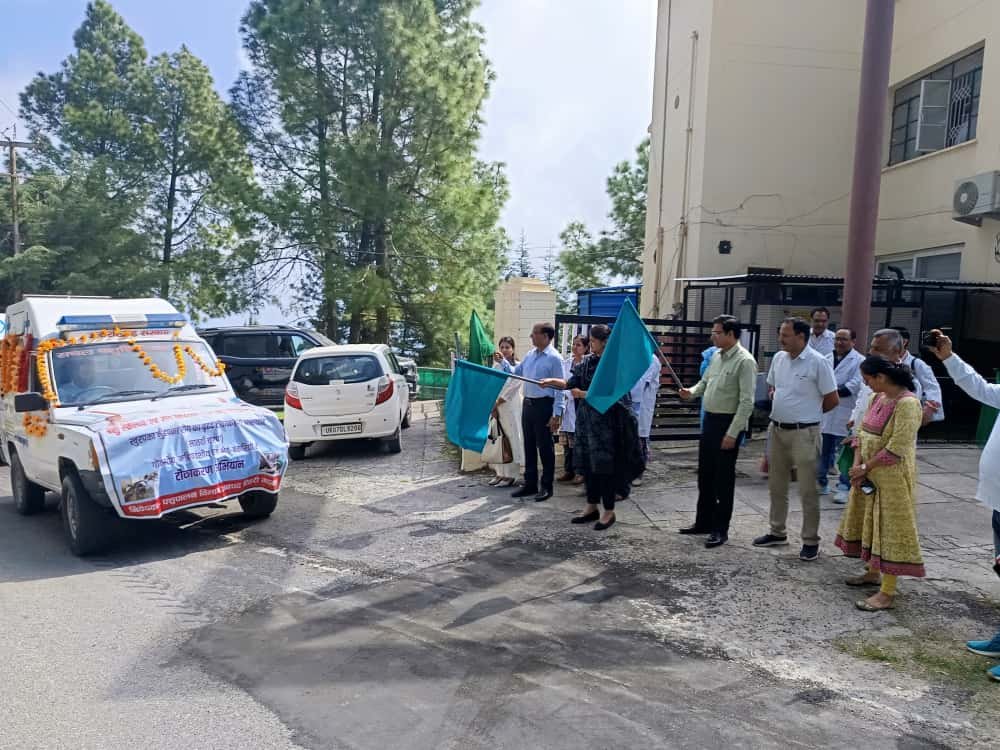 टिहरी : जनपद टिहरी गढ़वाल में खुरपका–मुंहपका बीमारी की रोकथाम हेतु 7वीं चरण के टीकाकरण अभियान का शुभारम्भ टिहरी गढ़वाल मुख्य विकास अधिकारी वरुणा अग्रवाल द्वारा किया गया। मुख्य विकास अधिकारी ने MVU सचल पशु चिकित्सा वाहनों को टीकाकरण हेतु हरी झण्डी दिखाकर रवाना किया और पशु चिकित्सा विभाग के समस्त उपस्थित लोगों को शुभकामनाएं दी एवं प्रेरित किया कि जनपद से कोई पशु टीकाकरण से वंचित ना रहे।