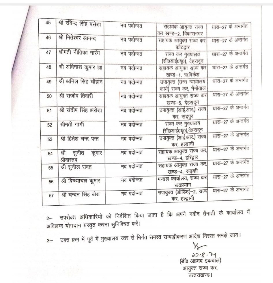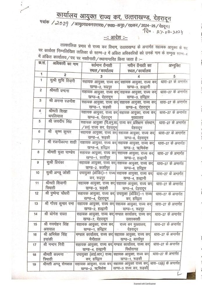 उत्तराखंड राज्य कर विभाग में अधिकारियों के बम्पर स्थानान्तरण, देखें सूचि by hssamachar August 29, 2024 written by hssamachar August 29, 2024 Share 0FacebookTwitterPinterestWhatsappदेहरादून: राज्य कर विभाग में कई अधिकारियों के ट्रांसफर किए हैं। कई अधिकारियों को प्रमोशन के बाद नई नियुक्ति दी गई है। Share 0 FacebookTwitterPinterestWhatsapp