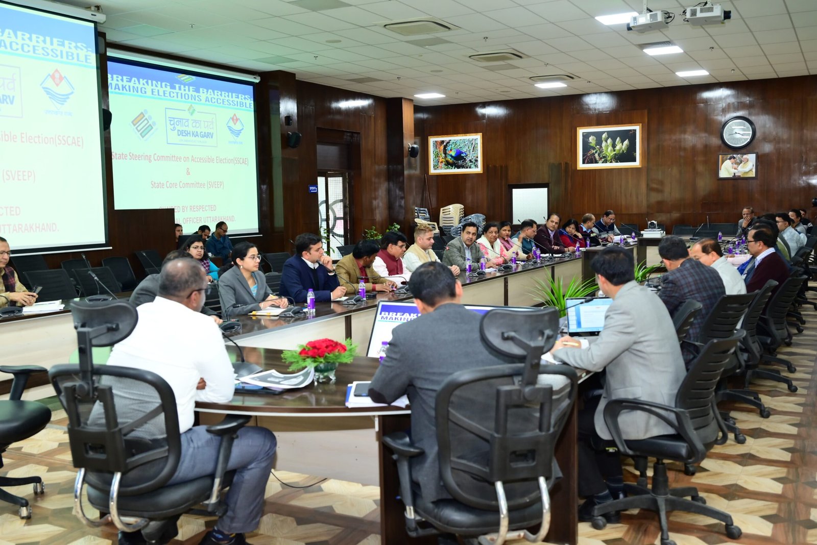 देहरादून : मुख्य निर्वाचन अधिकारी डॉ. बी.वी.आर.सी. पुरुषोत्तम ने शुक्रवार को सचिवालय में प्रदेश में अधिक से अधिक मतदान कराए जाने एवं प्रचार प्रसार को लेकर मीडिया एवं सोशल मीडिया टीम के साथ बैठक की। मुख्य निर्वाचन अधिकारी ने कहा कि प्रिंट एवं इलेक्ट्रॉनिक प्रेस/मीडिया को आसानी से निर्वाचन का डाटा उपलब्ध हो सके इसके लिए मीडिया प्लान तैयार रखा जाए। उन्होंने कहा कि मीडिया के साथ लगातार वार्ता कर वांछित जानकारियां उपलब्ध कराई जाएं। मुख्य निर्वाचन अधिकारी ने कहा कि प्रदेश में अधिक से अधिक मतदान कराए जाने के लिए सोशल मीडिया प्लेटफार्म का अधिक से अधिक उपयोग किया जाए। कहा कि राष्ट्रीय एवं स्थानीय पर्वों पर विशेष गतिविधियों के माध्यम से लोगों को मतदान हेतु जागरूक किया जा सकता है। इस अवसर पर संयुक्त मुख्य निर्वाचन अधिकारी नमामि बंसल एवं सूचना अधिकारी दिनेश कुमार सहित सोशल मीडिया टीम उपस्थित थी।