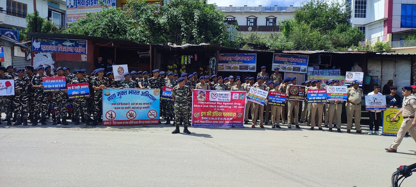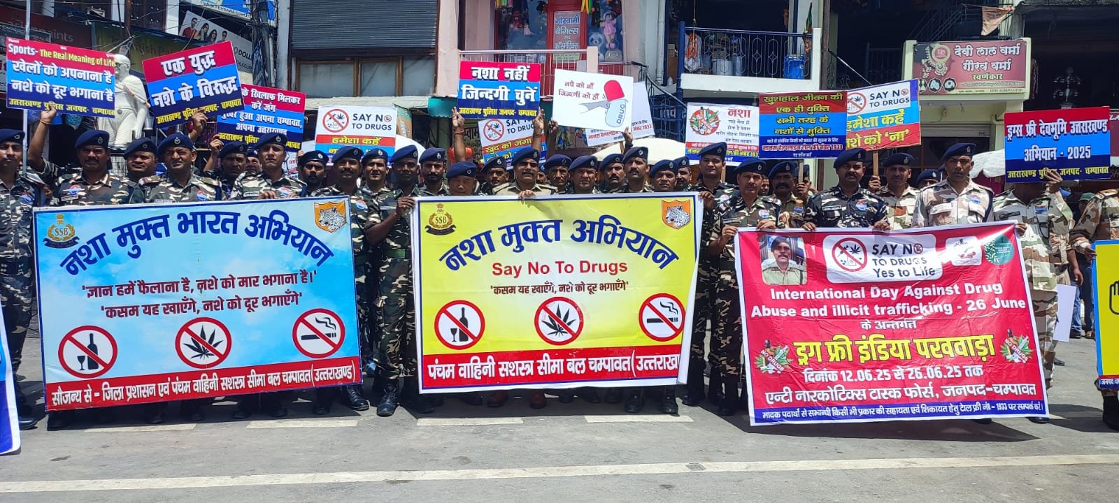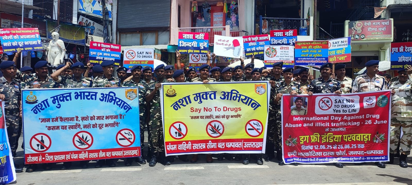 आज 26 जून 2025 विश्व ड्रग निषेध दिवस ‘The International Day Against Drug Abuse and Illicit Trafficking’ के उपलक्ष्य में जनपद चम्पावत पुलिस द्वारा एसएसबी एवं आईटीबीपी के जवानों तथा सम्मानित जनप्रतिनिधियों, व्यापार मण्डल चम्पावत, सभ्रान्त नागरिकों, जागरुक युवाओं के साथ जनजागरूकता हेतु पैदल रैली का आयोजन किया गया। उपरोक्त रैली का आयोजन खटकना पुल, मुख्य बाजार चम्पावत से रोडवेज बस स्टेशन चम्पावत तक किया गया।