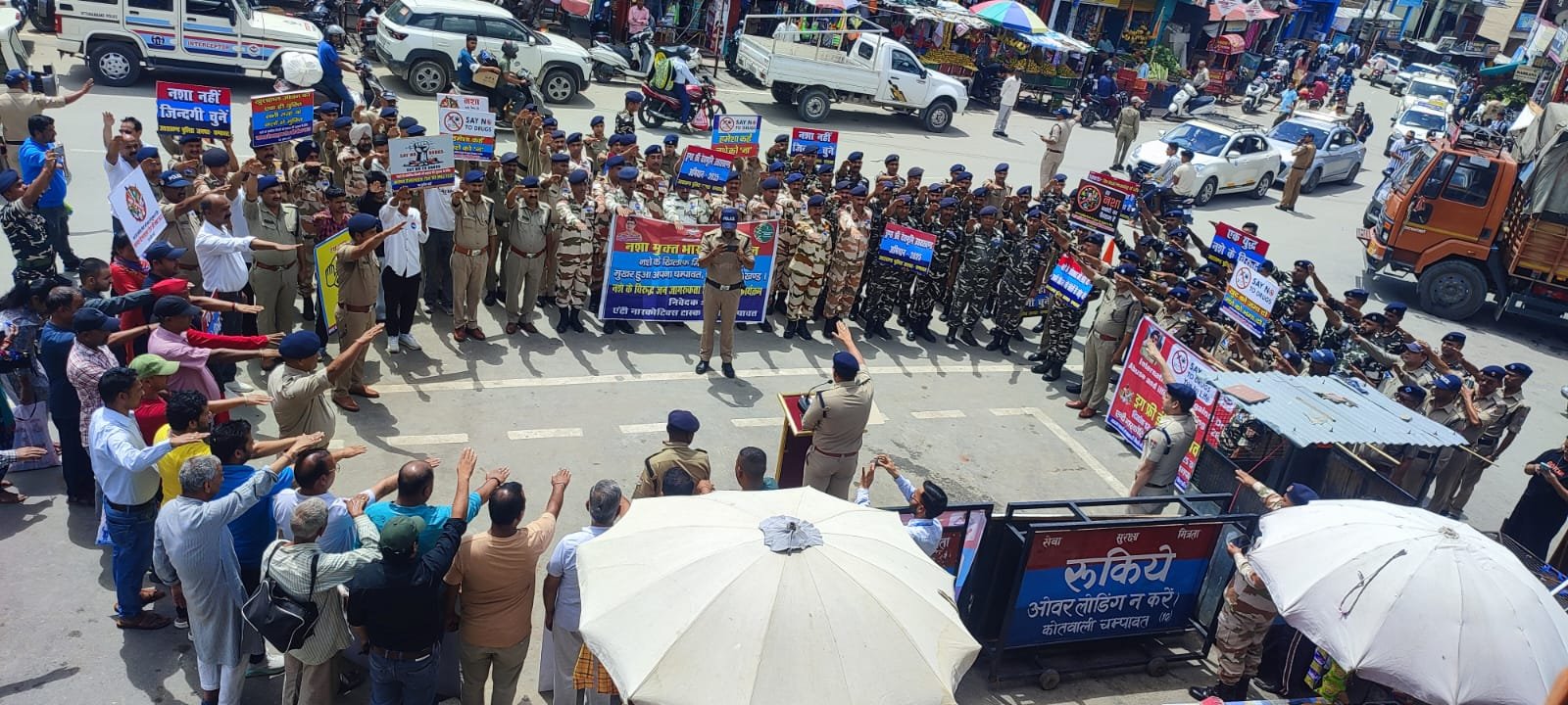 नशा मुक्त भारत अभियान, ड्रग्स फ्री देवभूमि अभियान, विश्व ड्रग निषेध दिवस पर मुख्य बाजार चम्पावत में पुलिस अधीक्षक अजय गणपति द्वारा उपस्थित जनसमूह तथा जवानों को नशा न करने तथा नशा उन्मूलन में अपना योगदान देने की शपथ दिलाई गयी। उपरोक्त अभियान के तहत पुलिस व समाज की आपसी सहभागिता से नशे रूपी दानव का संहार करने और समाज के सभी वर्गों द्वारा समाज के प्रति अपना उत्तरदायित्व रखते हुए नशे के खिलाफ मिलकर जंग करने की अपील करते हुए भारत सरकार द्वारा जारी MANAS टोल फ्री नम्बर 14446, 1933 व अन्य आपातकालीन नम्बरों के बारे में जानकारी दी गयी। उक्त अवसर पर पुलिस अधीक्षक अजय गणपति द्वारा अपने सम्बोधन में कहा कि “यह रैली नशामुक्ति के प्रति हमारे सामूहिक संकल्प का प्रतीक है। चंपावत को ड्रग-फ्री जनपद बनाने हेतु ऐसे कार्यक्रम निरंतर आयोजित किए जाएंगे।