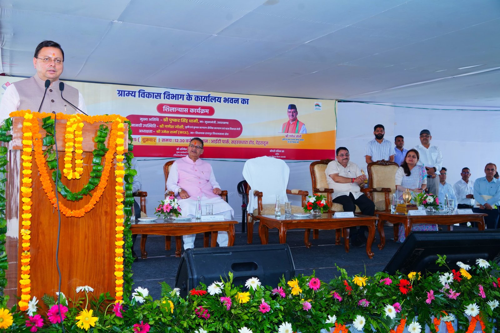 देहरादून : मुख्यमंत्री पुष्कर सिंह धामी ने शुक्रवार को डांडा नूरीवाला सहस्रधारा रोड, देहरादून में आयोजित कार्यक्रम में प्रतिभाग करते हुए ₹58.32 करोड़ लागत से बनने वाले ग्राम्य विकास भवन का शिलान्यास किया। इस दौरान उन्होंने परिसर में पौधारोपण भी किया। मुख्यमंत्री पुष्कर सिंह धामी ने ग्रामीण विकास विभाग के एकीकृत भवन के शिलान्यास पर शुभकामनाएं देते हुए कहा कि यह भवन ग्रामीण विकास के क्षेत्र में महत्वपूर्ण साबित होगा। उन्होंने कहा कि लगभग 58 करोड़ रुपए की लागत से निर्मित इस भवन में विभाग की प्रमुख फ्लैगशिप योजनाएं एक ही परिसर में संचालित होंगी।