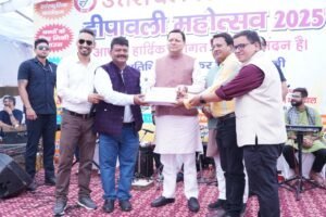देहरादून : मुख्यमंत्री पुष्कर सिंह धामी ने रविवार को देहरादून में उत्तरांचल प्रेस क्लब द्वारा आयोजित दीपावली महोत्सव-2025 कार्यक्रम में प्रतिभाग किया। इस दौरान मुख्यमंत्री ने लक्की ड्रॉ विजेताओं को पुरस्कार भी वितरित किए। मुख्यमंत्री ने कहा कि उत्तरांचल प्रेस क्लब की भूमि के आवंटन की कार्यवाही गतिमान है। इस कार्यवाही के पूरे होने के बाद, उत्तरांचल प्रेस क्लब के लिए भव्य भवन का भी निर्माण कार्य किया जाएगा। मुख्यमंत्री ने पत्रकारों के योगदान की सराहना करते हुए उत्तराखंड राज्य आंदोलन से लेकर आज तक, उत्तराखंड के अनेकों पत्रकारों ने प्रदेश के सर्वांगीण विकास में लेखनी के जरिए अपनी अहम भूमिका निभाई है।