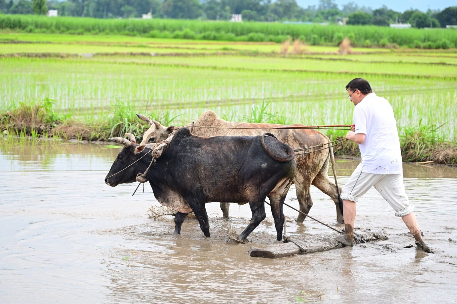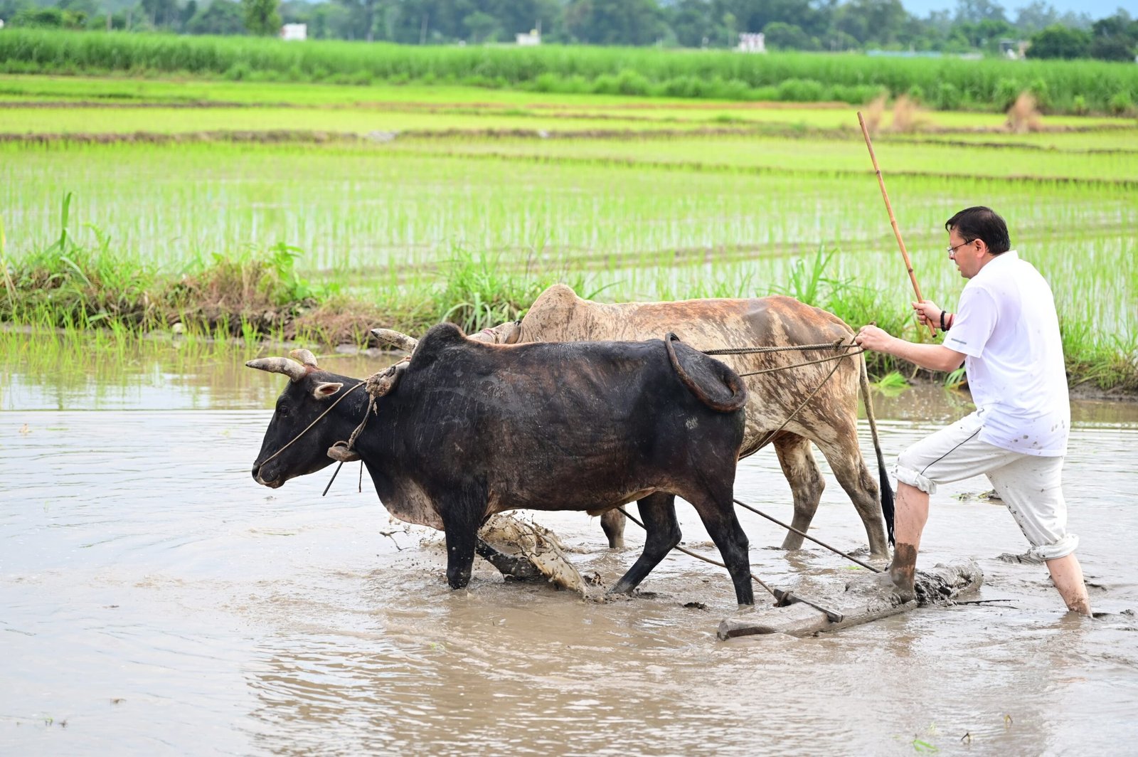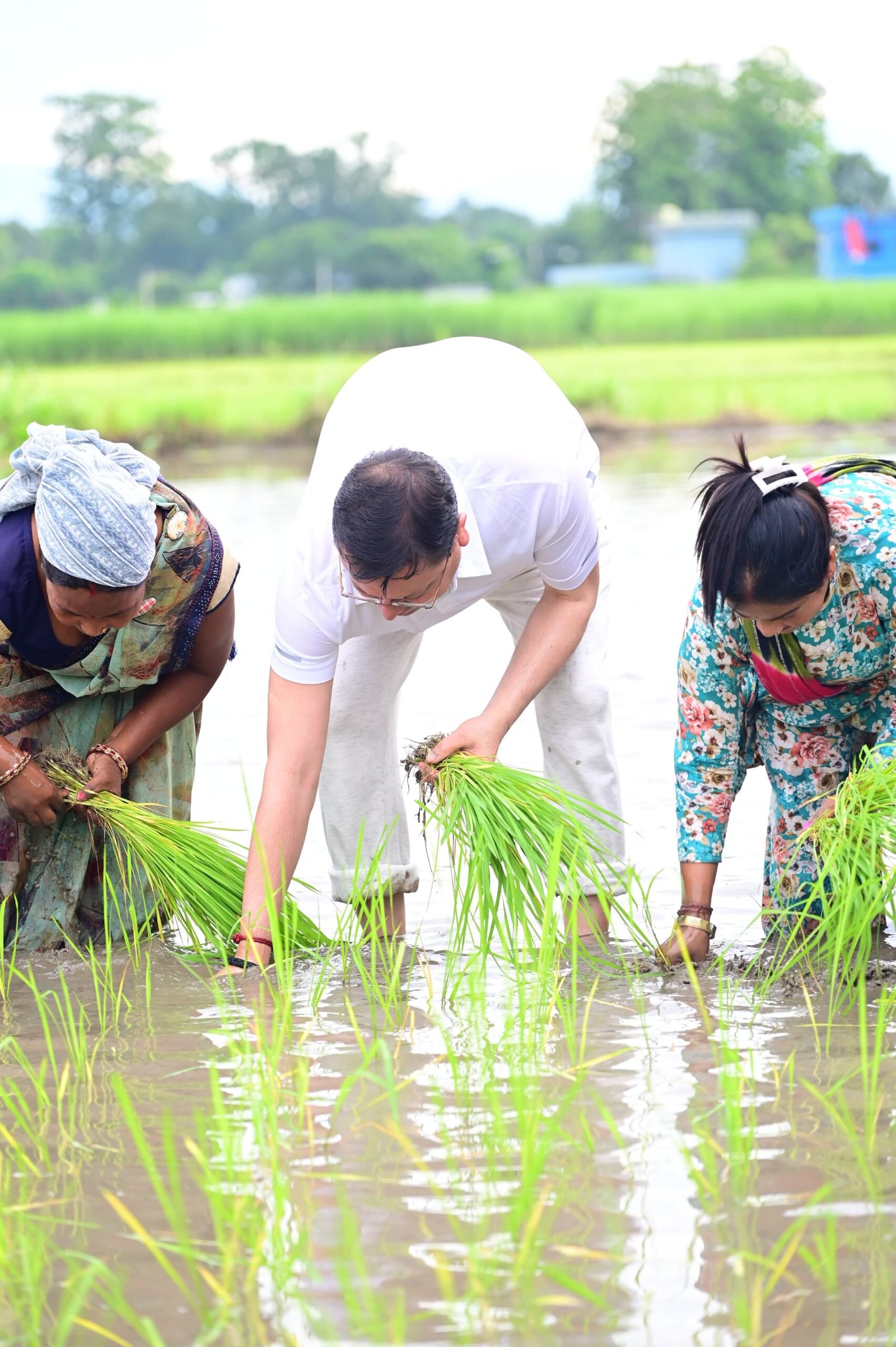 खटीमा : नगरा तराई क्षेत्र में उत्तराखंड के मुख्यमंत्री पुष्कर सिंह धामी ने शनिवार को अपने खेत में धान की रोपाई कर किसानों के परिश्रम, त्याग और समर्पण को नमन किया। उन्होंने कहा कि खेतों में उतरकर पुराने दिनों की यादें ताजा हो गईं। मुख्यमंत्री ने कहा कि अन्नदाता न केवल हमारी अर्थव्यवस्था की रीढ़ हैं, बल्कि वे हमारी संस्कृति और परंपराओं के संवाहक भी हैं।