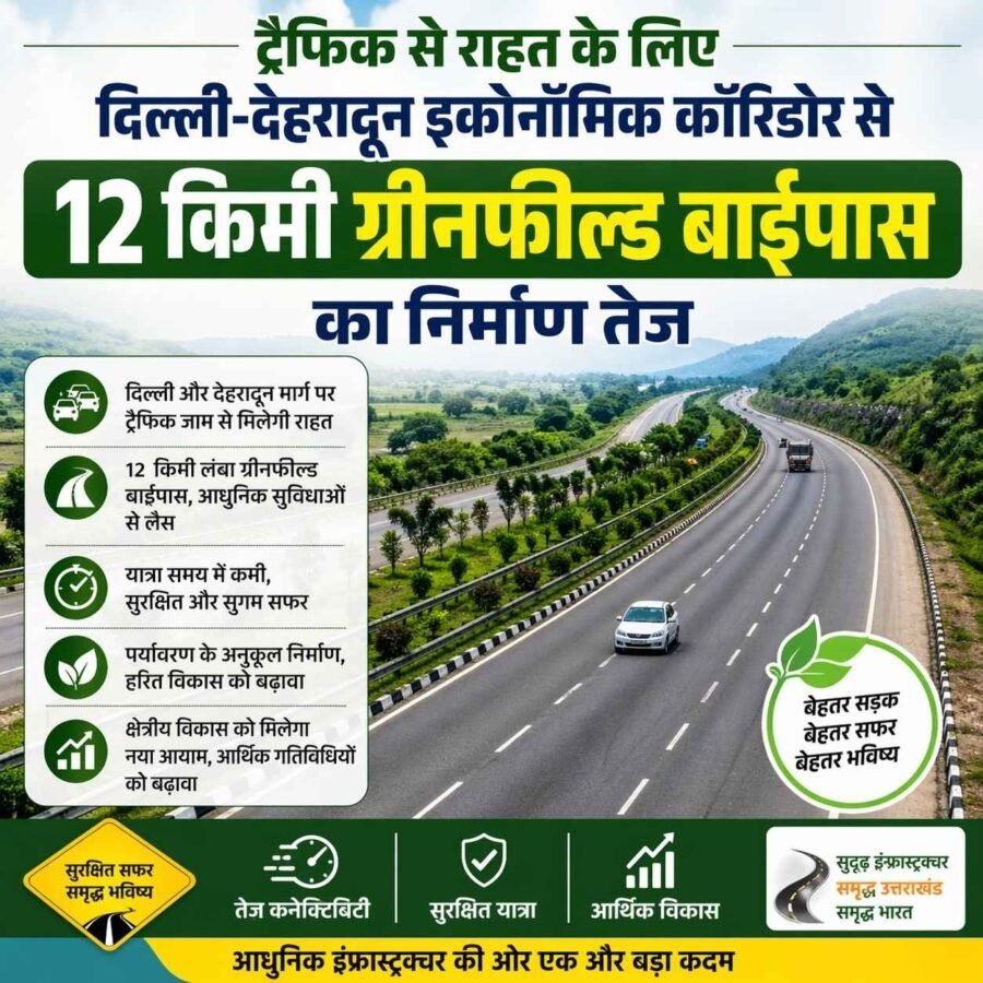 देहरादून : क्षेत्रीय कनेक्टिविटी को सुदृढ़ करने तथा देहरादून शहर में यातायात दबाव कम करने के उद्देश्य से राष्ट्रीय राजमार्ग प्राधिकरण (एनएचएआई) द्वारा उत्तराखंड में 12 किलोमीटर लंबा ग्रीनफील्ड चार-लेन एक्सेस-कंट्रोल्ड बाईपास का निर्माण किया जा रहा है। यह बाईपास दिल्ली-देहरादून इकोनॉमिक कॉरिडोर से जुड़ते हुए देहरादून के दक्षिण-पश्चिमी हिस्से में एक वैकल्पिक मार्ग के रूप में कार्य करेगा।