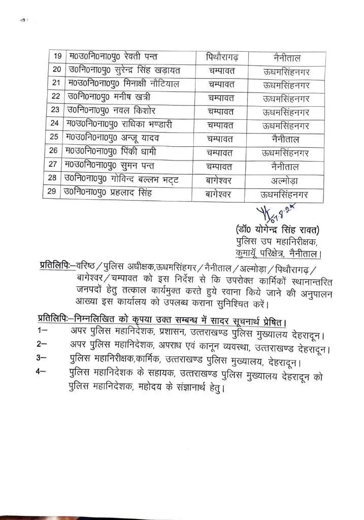नैनीताल : DIG ने कुमाऊं में बड़ी संख्या में इंस्पेक्टर और दरोगाओं के ट्रांसफर किए हैं। मैदानी जिलों जमे में इंस्पेक्टर और दरोगाओं को जहां पहाड़ चढ़या गया। वहीं, सालों से पहाड़ों पर नौकरी कर रहे इंस्पेक्टर व दरोगाओं को मैदानी जिलों में तैनाती दी गई है।