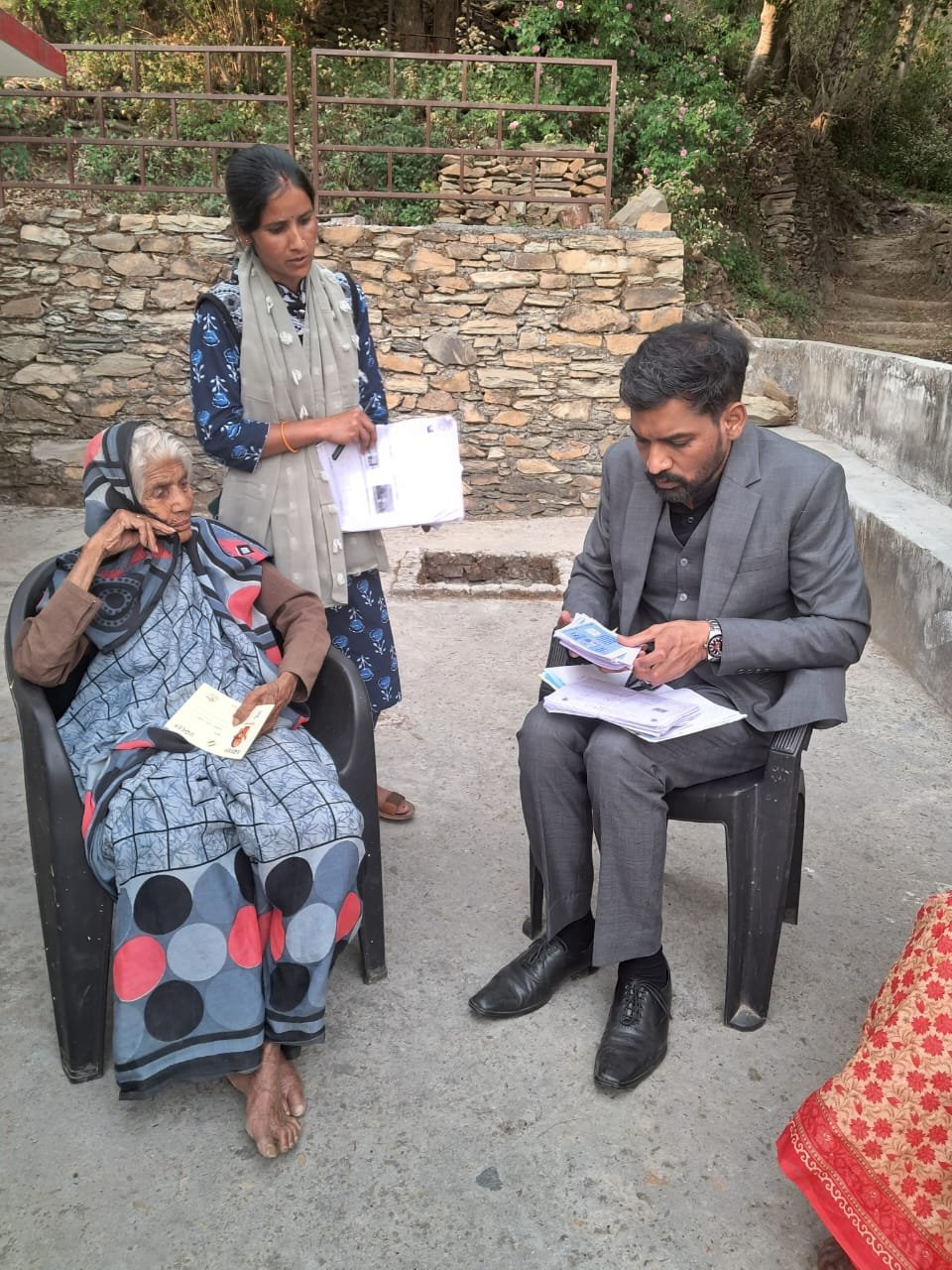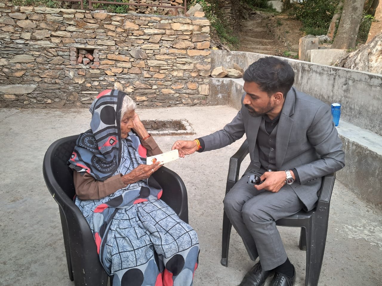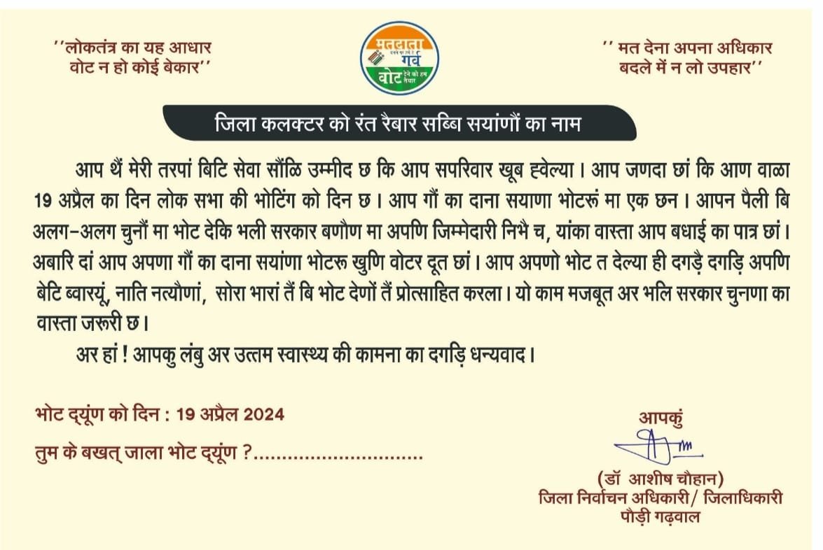 जिला निर्वाचन अधिकारी (सयानों के नाम का रंत रैबार) लेकर पहुंचे 103 वर्षीय महिला मतदाताओं के घर।
