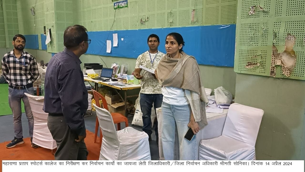 जिला निर्वाचन अधिकारी सोनिका ने महाराणा प्रताप स्पोर्टस कॉलेज पंहुचकर मतदान पाटिर्यों की रवानगी के लिए की जा रही समुचित तैयारियों का लिया जायजा, दिए निर्देश