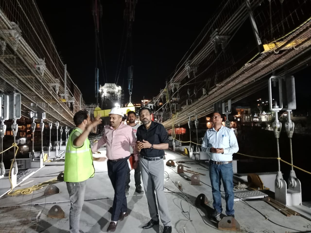 स्वर्गाश्रम : जिलाधिकारी डॉ. आशीष चौहान ने कल देर सांय को स्वर्गाश्रम जौंक स्थित निर्माणाधीन बजरंग सेतु पुल का निरीक्षण कर कार्यों की प्रगति और गुणवत्ता का जायजा लिया। निरीक्षण के दौरान उन्होंने संबंधित विभागीय अधिकारियों को निर्देश दिए कि पुल के निर्माण कार्य बेहतर गुणवत्ता के साथ निर्धारित समय सीमा में पूर्ण किया जाए।