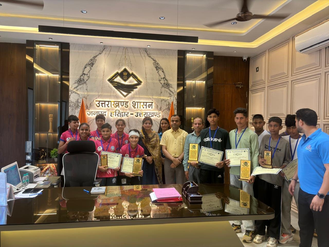 हरिद्वार : नशा मुक्त भारत अभियान कार्यक्रम में उत्कृष्ट प्रदर्शन करने वाले छात्र छात्राओं को जिलाधिकारी मयूर दीक्षित ने प्रमाण पत्र, मेडल एवं ट्रॉफी देकर किया सम्मानित।