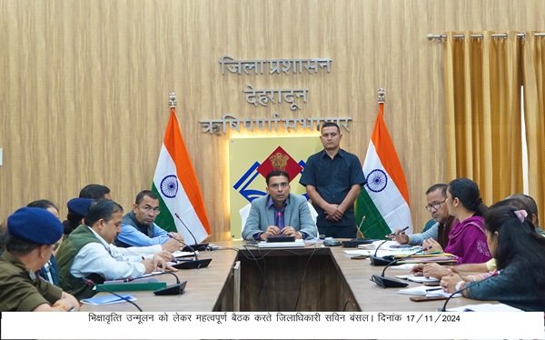 देहरादून :  शहर को बाल भिक्षावृत्ति से मुक्त करने की कवायद परवान चढते दिख रही है, इसी परिपेक्ष्य में जिलाधिकारी सविन बंसल की अध्यक्षता में ऋषिपर्णा सभागार कलेक्ट्रेट में भिक्षावृत्ति उन्मूलन को लेकर महत्वपूर्ण बैठक आयोजित की गई। मुख्य शिक्षा अधिकारी एवं जिला प्रोबेशन अधिकारी द्वारा विगत सप्ताह से  भिक्षावृत्ति से रेस्क्यू किये जाने वाले बच्चों हेतु तैयार किये गए माइक्रो प्लान को जिलाधिकारी ने अनुमोदन दे दिया है।  इसी दौरान रेस्क्यू किये जाने वाले बच्चों को इन्टेंसिव केयर शैल्टर में उचित माहौल उपलब्ध कराने हेतु 03 सामाजिक संगठनों आसरा, सरफीना, समर्पण से जिला प्रशासन का एमओयू हस्ताक्षर कर आपस में अंतरित हो गया है।