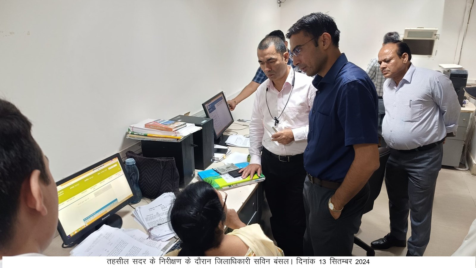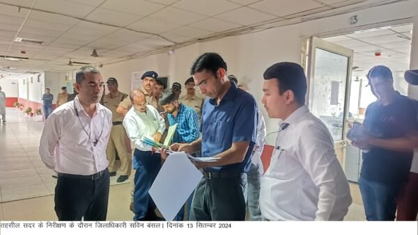 देहरादून : जिलाधिकारी सविन बसंल ने तहसील सदर का किया औचक निरीक्षण। जिलाधिकारी आज सुबह वर्षा के बीच प्रातः 9ः50 बजे तहसील सदर पंहुचे। जिलाधिकारी ने उपस्थिति पंजिका का निरीक्षण करते हुए देरी से आने वाले कार्मिकों जारी की चेतावनी, 10ः30 बजे बाद आने वाले कार्मिकों का 01 दिन के वेतन रोकने के दिए निर्देश। सुस्त कार्य प्रणाली पर डब्लू.बी.एन, ए.डब्लू.बी.एन के तबादले को किया आदेशित।