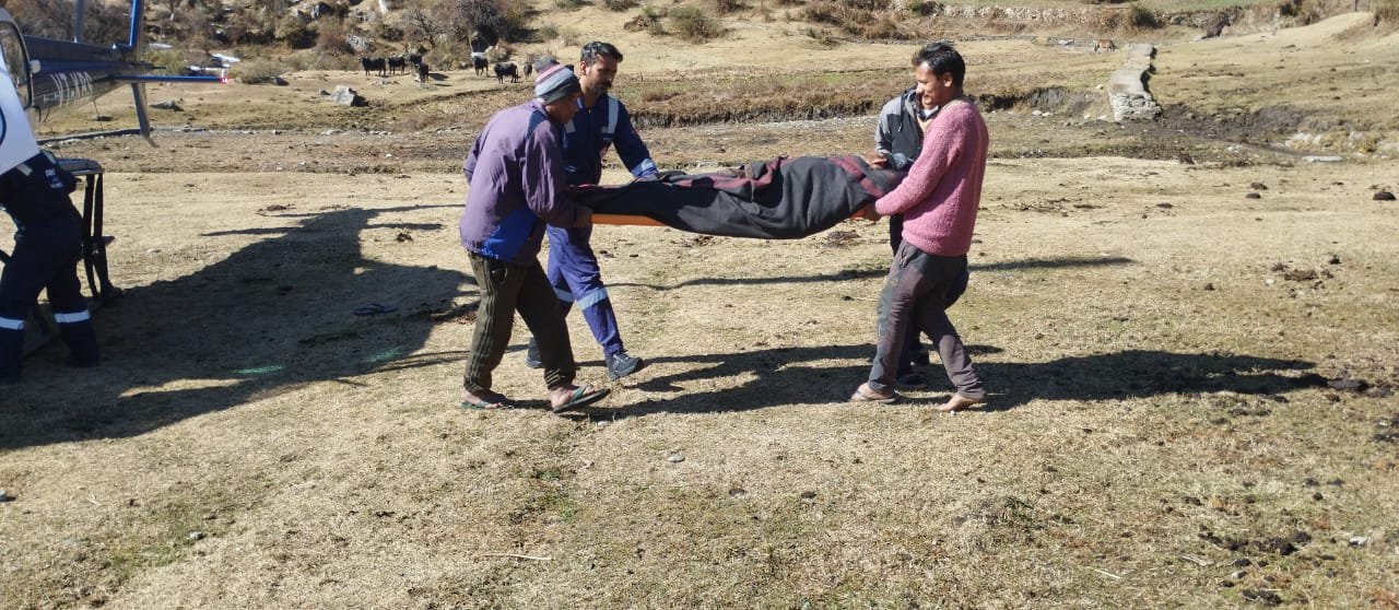 चमोली : चमोली के सुदूरवर्ती गांव डुमक के रहने वाले भवान सिंह गंभीर रूप से पैरालाइज है। विगत कुछ समय से उनका इलाज ऋषिकेश एम्स में चल रहा था। उनकी बीमारी अत्यंत गंभीर होने और चिकित्सकों द्वारा उनको घर ले जाने की सलाह दी गई और एम्स से डिस्चार्ज किया गया। पैरालाइज मरीज की स्थिति नाजुक होने और डुमक गांव सड़क से करीब 6 किलोमीटर दूर होने पर मरीज को स्वयं घर तक पहुंचाना मुश्किल था। इस पर उनके परिजनों ने हैली एंबुलेंस की मांग की।