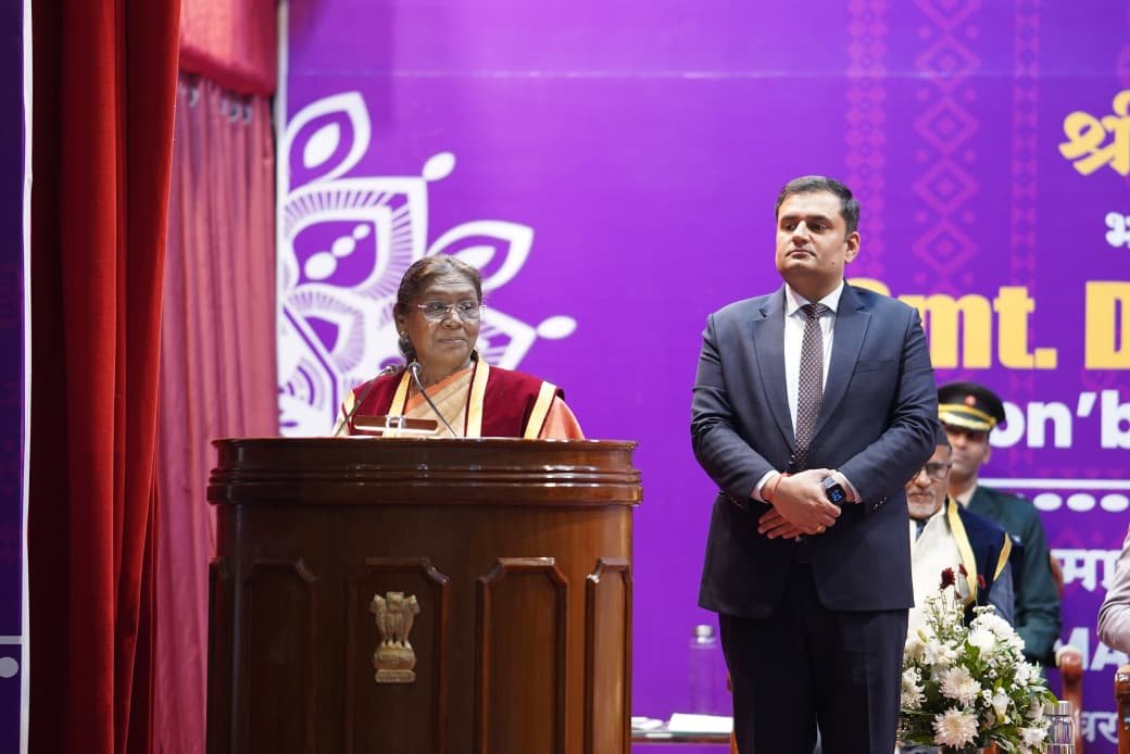 दीक्षांत समारोह को संबोधित करते हुए राष्ट्रपति ने कहा कि शिक्षा किसी भी राष्ट्र के विकास की नींव होती है। इसलिए, शिक्षा का उद्देश्य केवल विद्यार्थियों की बुद्धि और कौशल का विकास करना ही नहीं, बल्कि उनके नैतिक बल और चरित्र को भी सुदृढ़ करना होना चाहिए। राष्ट्रपति ने कहा कि शिक्षा हमें आत्मनिर्भर बनाती है, साथ ही हमें विनम्र होना और समाज व देश के विकास में योगदान देना सिखाती है। उन्होंने विद्यार्थियों से आग्रह किया कि वे अपनी शिक्षा को वंचित वर्गों की सेवा और राष्ट्र निर्माण के कार्य में समर्पित करें। उन्होंने कहा कि यही सच्चा धर्म है, जो उन्हें सच्चा सुख और संतोष प्रदान करेगा।