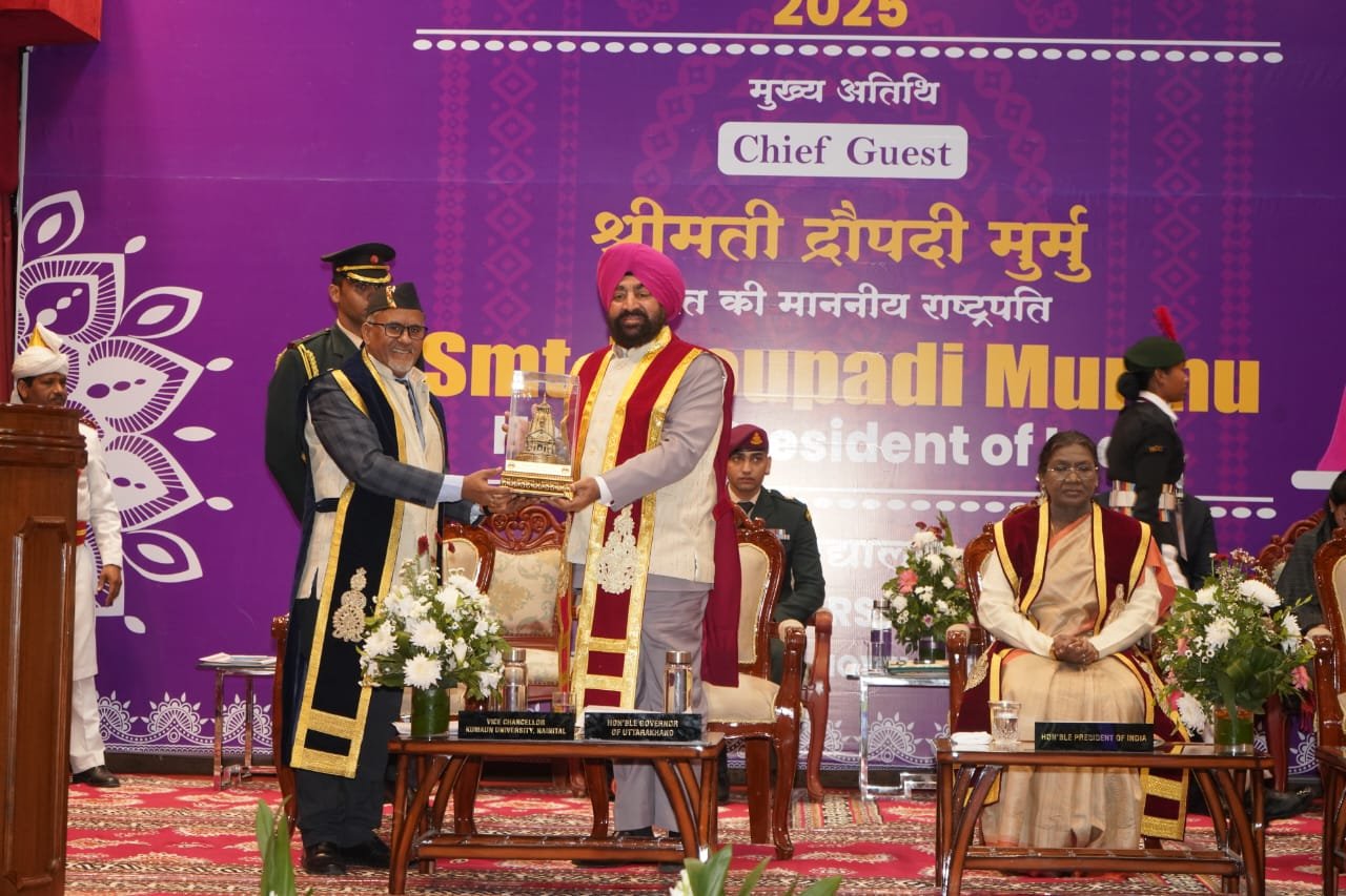 इस अवसर पर राज्यपाल लेफ्टिनेंट जनरल गुरमीत सिंह (से नि) ने कहा कि आज का यह अवसर हम सभी के लिए अत्यंत गौरव का क्षण है कि इस दीक्षांत समारोह में हमें राष्ट्रपति का सानिध्य और मार्गदर्शन प्राप्त हो रहा है। उन्होंने देवभूमि उत्तराखण्ड में पूरे प्रदेश वासियों की ओर से राष्ट्रपति का हार्दिक अभिनंदन और स्वागत किया। राज्यपाल ने विद्यार्थियों से कहा कि आपके हाथों में जो उपाधि है यह तभी सार्थक होगी जब आप इसे सेवा, सत्यनिष्ठा और संवेदना के साथ जोड़ेंगे। उन्होंने कहा कि शिक्षा का उद्देश्य केवल बुद्धि का विकास नहीं बल्कि चरित्र का निर्माण भी है। ज्ञान तभी सार्थक है, जब उसके साथ नैतिकता जुड़ी हो। आज जब समाज तेजी से बदल रहा है तब विद्यार्थियों के भीतर, ईमानदारी, अनुशासन और जिम्मेदारी का भाव और भी आवश्यक है।