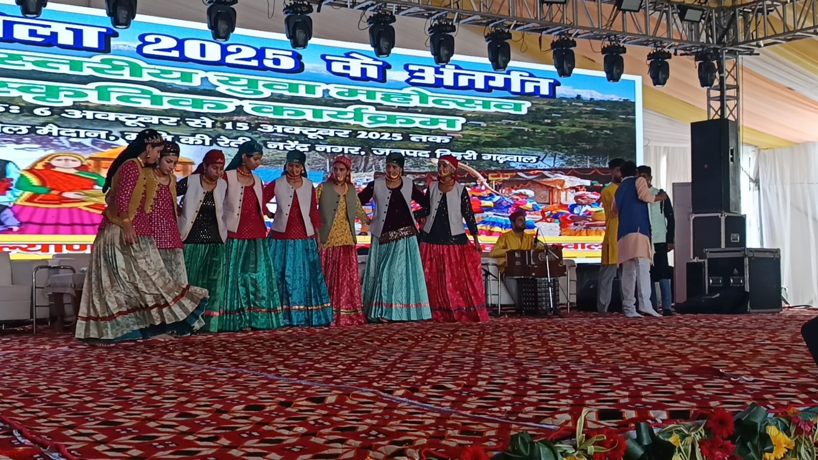 सरस मेले में शिक्षा विभाग एवं युवा विभाग के माध्यम से सांस्कृतिक कार्यक्रमों की प्रस्तुतियां दी गई। सांस्कृतिक संध्या में शाम -ए-गजल में वसीम बरेलवी कवि सम्मलेन आयोजित किया जाएगा। इस मौके पर सीडीओ वरुणा अग्रवाल, पीडी डीआरडीए पी.एस. चौहान, एसडीएम नरेंद्रनगर आशीष चौहान, अधिशासी अभियंता लघु सिंचाई बृजेश गुप्ता, बीडीओ श्रुति वत्स, सहित अन्य अधिकारी, कर्मचारी, स्वयं सहायता समूहों की महिलाएं, क्षेत्रीय लोग मौजूद रहे।
