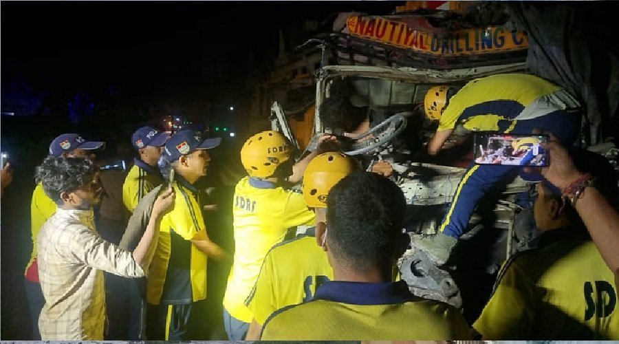 ट्रोला चालक आग की चपेट में आ गया और मौके पर ही उसकी मृत्यु हो गई। ट्रक चालक भी टक्कर के कारण गंभीर रूप से घायल हुआ और उसने भी घटनास्थल पर ही दम तोड़ दिया। ट्रक में सवार एक अन्य व्यक्ति बुरी तरह घायल था, जिसे एसडीआरएफ और पुलिस की सहायता से बाहर निकालकर तत्काल अस्पताल भेजा गया। उसकी हालत नाजुक बताई जा रही है।