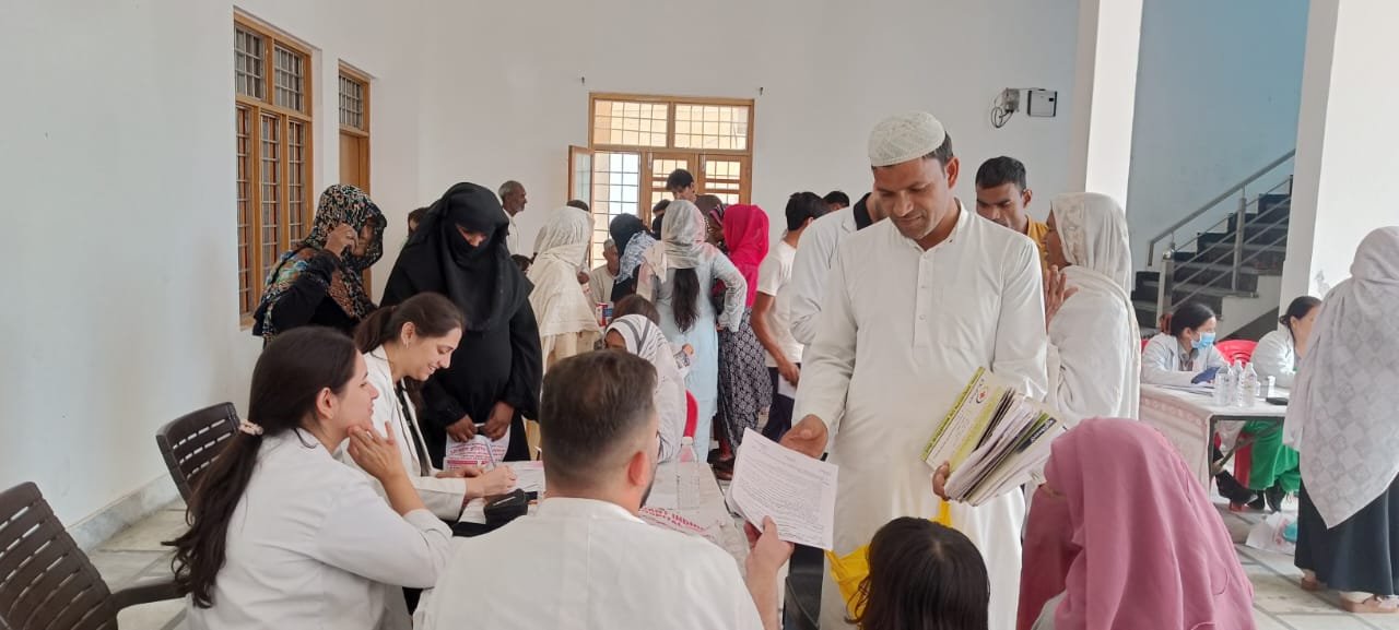 श्री महंत इन्दिरेश अस्पताल की ओर से निःशुल्क जांचें की गईं और फ्री दवाईयां भी बांटी गई