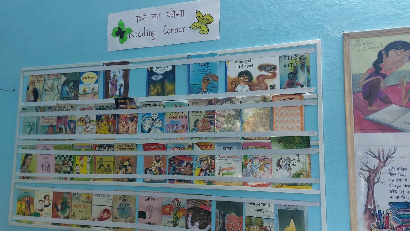 पुस्तकालय और रीडिंग कॉर्नर को आकर्षक ढंग से सजाया गया है। पुस्तकालय के बाहर “स्टार रीडर सेल्फी कॉर्नर” बनाया गया है, जो बच्चों को अधिक पुस्तकें पढ़ने के लिए प्रोत्साहित करता है। महीने में सबसे अधिक पुस्तकें पढ़ने वाले बच्चों को “स्टार रीडर” का पुरस्कार दिया जाता है। बच्चों द्वारा लिखी गई कहानियों को दीवार पत्रिका के रूप में पुस्तकालय की दीवारों पर प्रदर्शित किया जाता है, जिसे समय-समय पर बदला जाता है। यह वातावरण प्रिंट-रिच बनाने में मदद करता है और बच्चों में रचनात्मकता का विकास करता है।