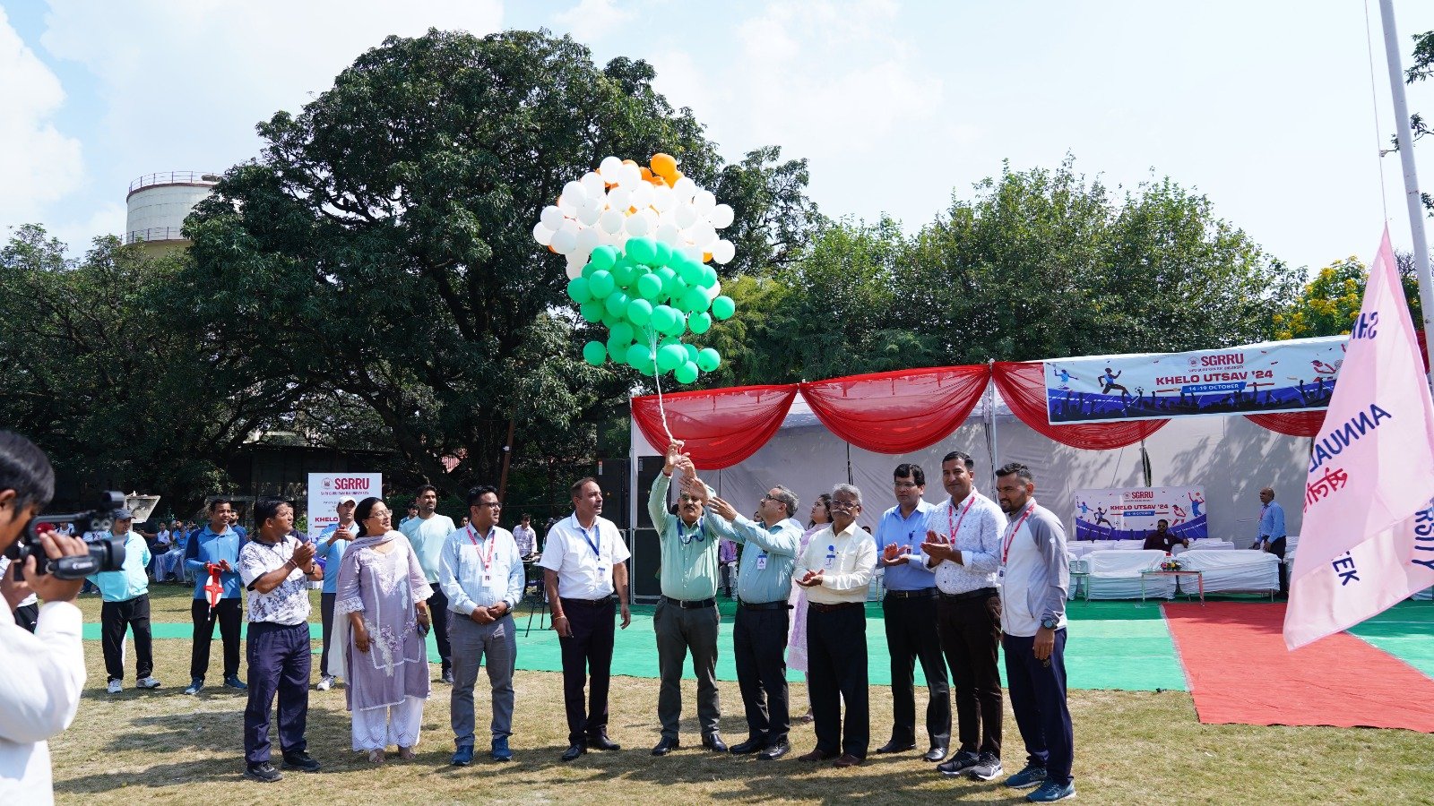 उ्दघाटन समारोह में विश्वविद्यालय के योग के छात्र-छात्राओं द्वारा की गई योग प्रस्तुति की भूरी भूरी प्रशंसा हुई। छात्र-छात्राओं ने योग आसनों के द्वारा मानसिक व शारीरिक संतुलन का शानदार संदेश दिया। आईटीबीपी के बैंड द्वारा सारे जहां से अच्छा हिन्दोस्तां हमारा गीत की मधुर धुन बजाई गई। एसजीआरआरयू के 11 संघटक काॅलेजों के छात्र-छात्राओं ने बैंड की मधुर धुन के साथ अनुशासित परेड एवं कदमताल का प्रदर्शन किया। डाॅ ईशा शर्मा ने स्वागत अभिभाषण पढ़ा।
