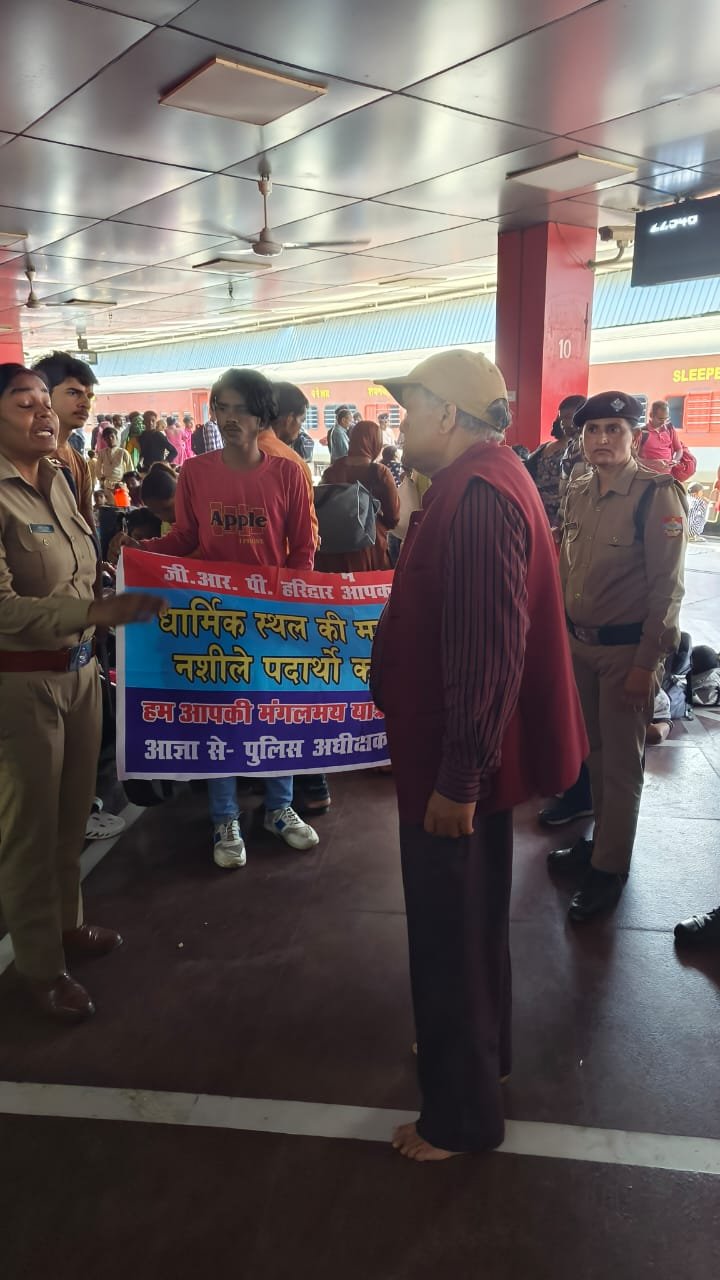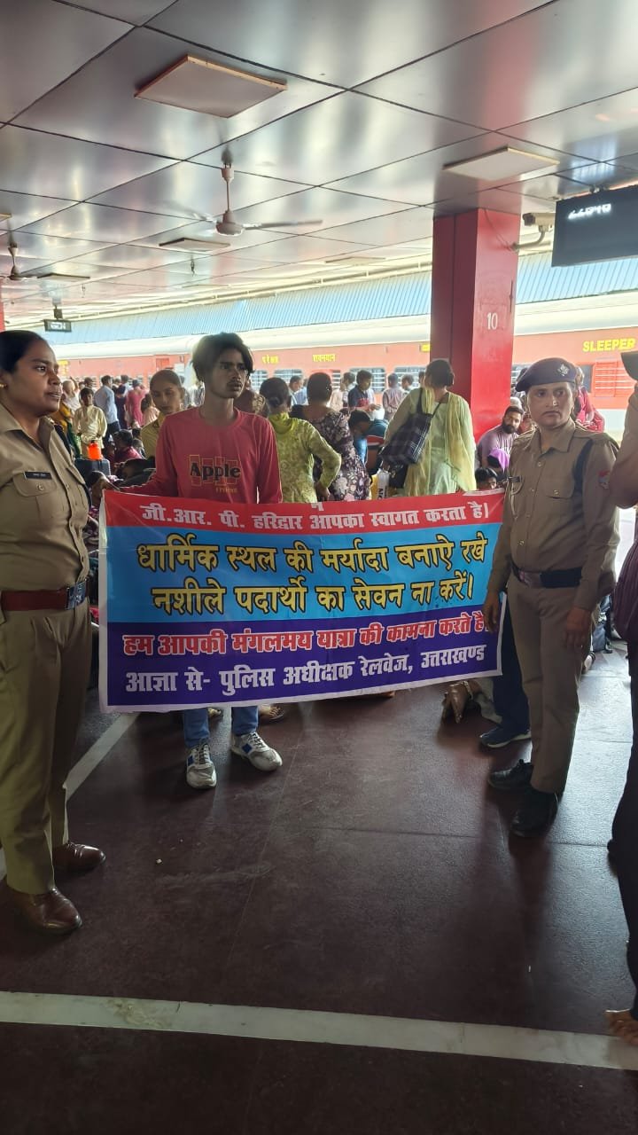 हरिद्वार : पुलिस अधीक्षक जीआरपी उत्तराखंड हरिद्वार के आदेशानुसार रेलवे स्टेशन हरिद्वार पर महिलाओं व बच्चों की सुरक्षा, साइबर अपराधों की रोकथाम तथा नशे के दुष्परिणाम, बच्चा चोरी आदि से संबंधित अपराधों के बारे मे किया गया जागरूक किया गया। आम- जनमानस को महिला सम्बन्धी अपराधों व उनके बचाव के बारे में जानकारी दी। साथ ही सोशल मीडिया के (फेसबुक, instagram, ट्विटर तथा व्हाट्सअप आदि) से संबंधित साइबर अपराधों से बचाव, डायल-112, साइबर हेल्पलाइन-1930, नशा उन्मूलन और उत्तराखण्ड पुलिस एप आदि के बारे में जानकारी देते हुए किसी भी प्रकार की सहायता या रेलवे स्टेशन क्षेत्र अंतर्गत होने वाली अवैध गतिविधियों/मादक पदार्थों की तस्करी की सूचना देने के लिए प्रेरित किया गया। उत्तराखंड पुलिस एप्लीकेशन के अंतर्गत गौरा शक्ति माड्यूल के बारे में जानकारी देकर रजिस्ट्रेशन करने हेतु जागरूक किया गया महिलाओं को अपनी समस्या को गौरा शक्ति माड्यूल के अंतर्गत दर्ज कराने हेतु जागरूक किया गया एवं ट्रेन में यात्रा करने के दौरान बरती जाने वाली सावधानियों से अवगत कराया गया।