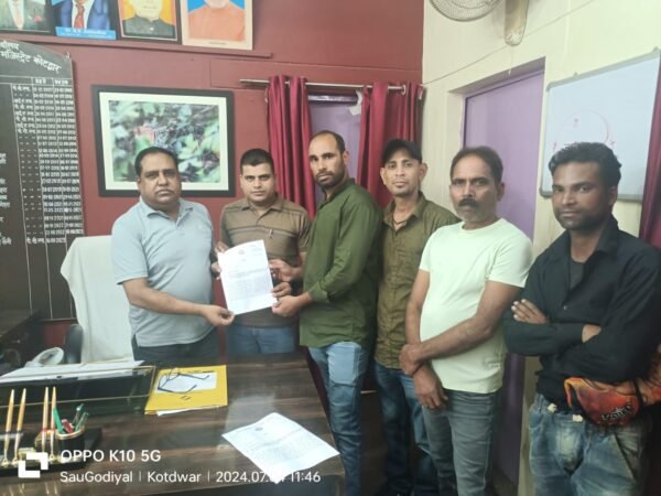 कोटद्वार। देश की संसद में नेता प्रतिपक्ष राहुल गांधी के सोमवार को संसद सत्र के दौरान हिंदूओं को लेकर एक विवादित बयान दिया था जिस पर गुरुवार को हिंदू जागरण मंच की स्थानीय इकाई ने रोष व्यक्त करते हुए उपजिलाधिकारी कोटद्वार के माध्यम से राष्ट्रपति नेता प्रतिपक्ष पर कार्रवाई करने के संबंध में ज्ञापन सौंपा है । मंच के कार्यकर्ताओं ने ज्ञापन के माध्यम से कहा है कि सदन में राष्ट्रपति के अभिभाषण पर धन्यवाद प्रस्ताव पर चर्चा के दौरान राहुल गांधी ने जो बयान दिया उसकी मंच निंदा करता है। ज्ञापन प्रेषित करने वालों में जिला संयोजक सौरभ गोदियाल, रमेश सिंह, गणेश सिंह, प्रीतम सिंह, प्रवीन रावत, पंकज नेगी, रवींद्र बिष्ट, प्रकाश ढ़ौंडियाल, सोनम गुसाई और शशि रावत आदि थे।