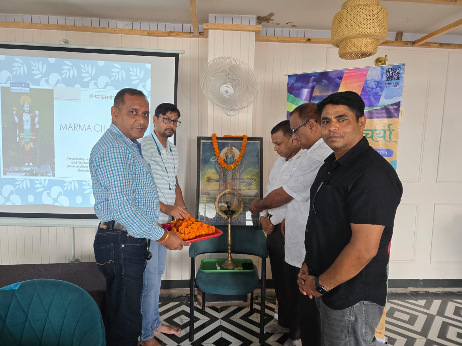 कार्यशाला का शुभारंभ ऋषिकुल राजकीय आयुर्वेदिक फार्मेसी, हरिद्वार में भगवान धन्वंतरि की पूजा एवं दीप प्रज्वलन के साथ हुआ। इस अवसर पर अधीक्षक डॉ. अशोक तिवारी, वरिष्ठ आयुर्वेदाचार्य डॉ. नवीन दास, राष्ट्रीय आयुष मिशन के जनपद नोडल अधिकारी डॉ. अवनीश उपाध्याय, वरिष्ठ चिकित्सक डॉ. सुनील रतूड़ी, कार्यक्रम समन्वयक डॉ. घनेन्द्र वशिष्ठ एवं मर्म चिकित्सा प्रशिक्षक डॉ. पंकज बच्चस मंच पर उपस्थित रहे।