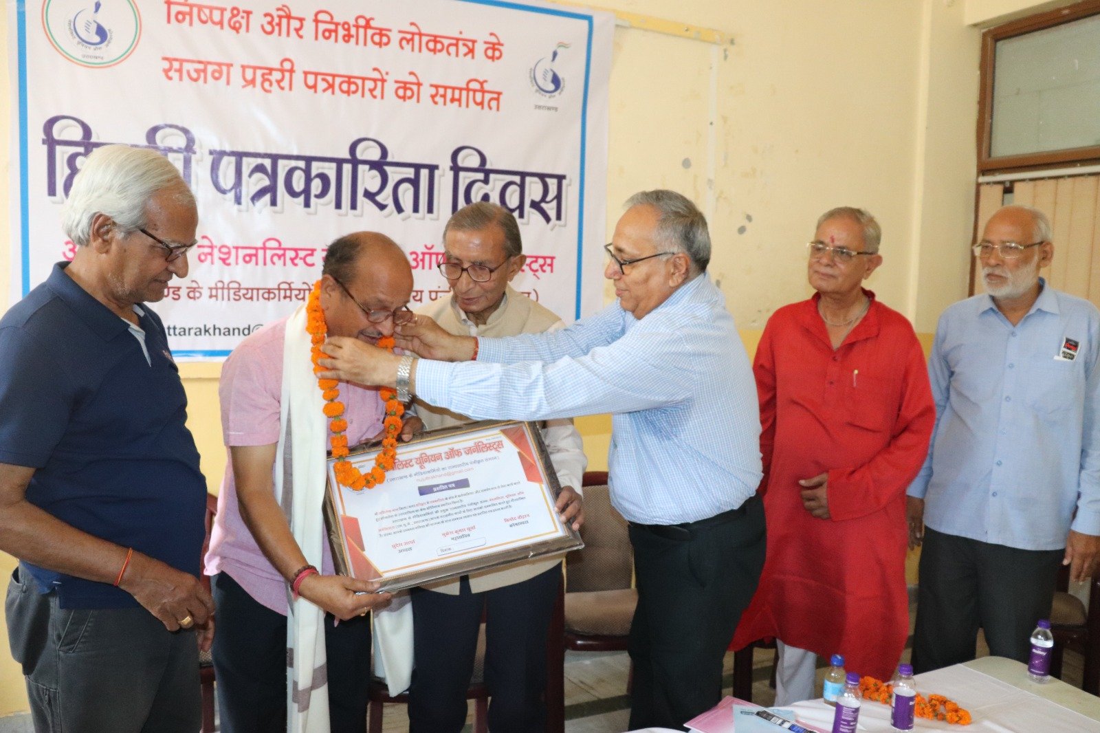 हरिद्वार। नेशनलिस्ट यूनियन ऑफ जर्नलिस्ट (एनयूजे उत्तराखण्ड) की हरिद्वार इकाई की ओर से हिंदी पत्रकारिता दिवस के उपलक्ष में बुधवार को नेहरू यूथ हॉस्टल में एक विचार गोष्ठी का आयोजन किया गया। जिसमें देश की आजादी से लेकर उत्तराखंड राज्य आंदोलन व राष्ट्रहित में पत्रकारिता की भूमिका पर चर्चा की गई। इस अवसर पर पत्रकारिता के क्षेत्र में उत्कृष्ट कार्य करने वाले पत्रकारों को यूनियन की ओर से सम्मानित भी किया गया।