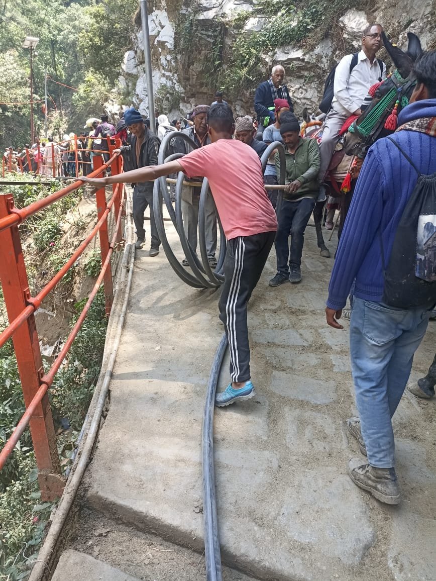 रुद्रप्रयाग : श्री केदारनाथ धाम में भारी संख्या में श्रद्धालुओं का आना जारी है। पेयजल को लेकर किसी भी श्रद्धालू को कोई परेशानी एवं असुविधा न हो इसके लिए यात्रा मार्ग से लेकर केदारनाथ धाम तक जल आपूर्ति नियमित रखने के लिए कठिन परिस्थितियों को पार पाकर जल संस्थान मुस्तैदी से अपना कार्य कर रहा है। गौरीकुंड से करीब दो किलोमीटर दूर कठिन पहाड़ी एवं पगडण्डियाँ पार कर जल संस्थान के कर्मचारियों ने जल आपूर्ति बढ़ा दी है। अधिशासी अभियंता जल संस्थान अनीश पिल्लई ने बताया कि गौरीकुंड में घोड़े-खच्चरों के लिए बनी चरी सहित अन्य संस्थानों में पानी की कमी की शिकायत मिल रही थी। वहीं कुछ स्थान पर अवैध जल कनेक्शन की शिकायत भी मिली थी।