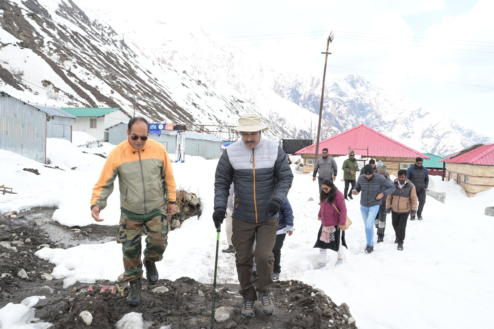 निरीक्षण के दौरान सचिव युगल किशोर पंत केदारनाथ मंदिर परिसर भी पहुंचे, जहां उन्होंने मंदिर के चारों ओर चल रहे पुनर्निर्माण तथा सौंदर्यीकरण कार्यों का जायजा लिया। उन्होंने निर्माण कार्यों की गुणवत्ता और प्रगति की समीक्षा करते हुए अधिकारियों को निर्देशित किया कि सभी कार्य समयबद्ध ढंग से पूर्ण किए जाएं ताकि यात्रा आरंभ होने से पहले श्रद्धालुओं को किसी प्रकार की असुविधा न हो। इसके अतिरिक्त उन्होंने मंदिर के आसपास तथा गौरीकुंड से केदारनाथ तक के पैदल मार्ग का भी निरीक्षण किया। इस दौरान उन्होंने संबंधित विभागों को मार्ग पर जमी बर्फ और मंदिर परिसर की बर्फ को शीघ्रातिशीघ्र हटाने के सख्त निर्देश दिए।