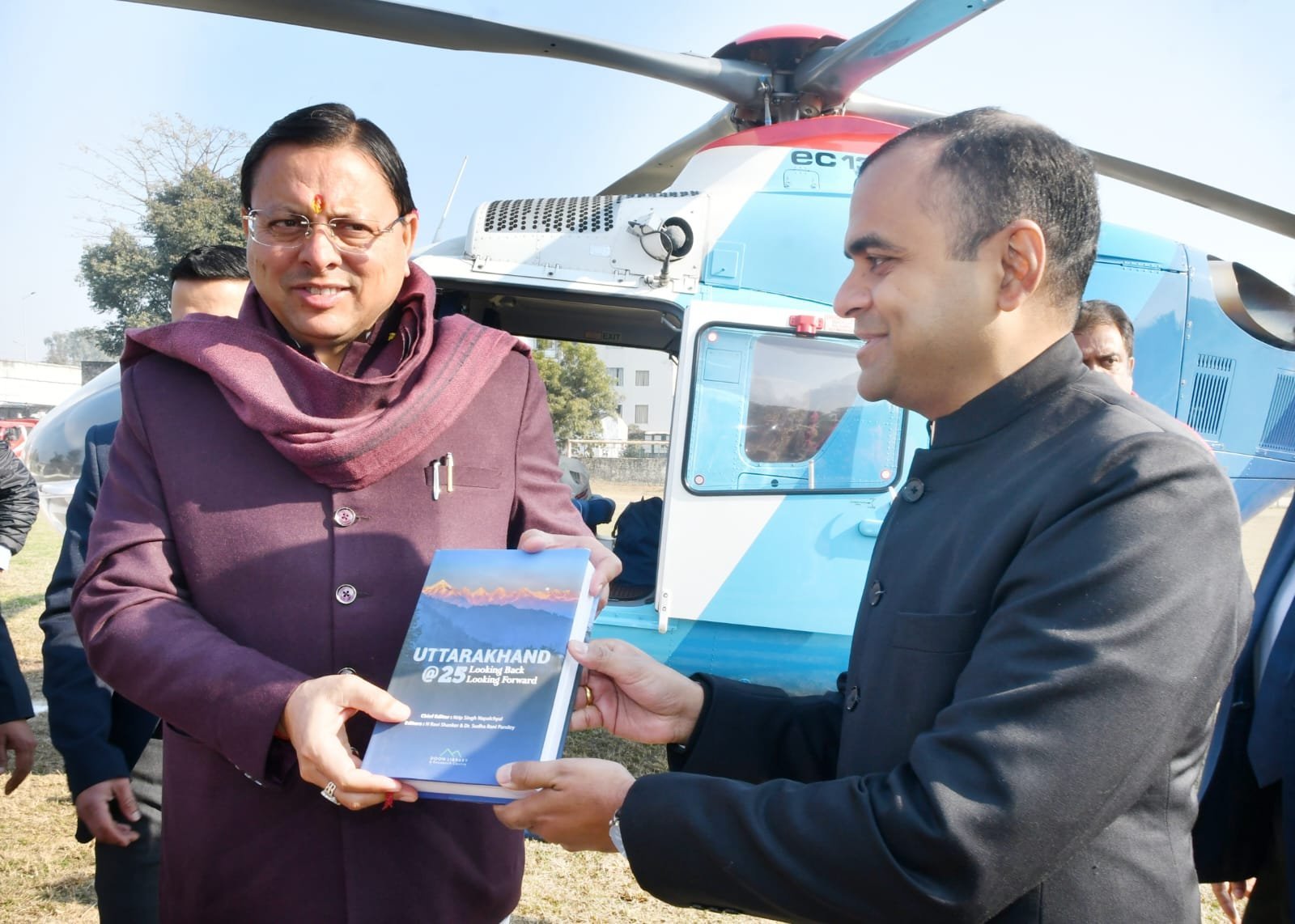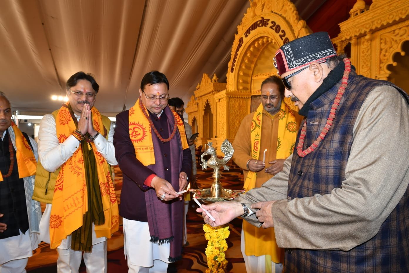 जनपद आगमन पर जिलाधिकारी मयूर दीक्षित ने हेलीपैड पर मुख्यमंत्री को पुस्तक भेट कर स्वागत किया, इस अवसर पर वरिष्ठ पुलिस अधीक्षक प्रमेंद्र सिंह डोभाल सहित जनप्रतिनिधि, प्रशासनिक एवं पुलिस अधिकारी मौजूद रहे। शताब्दी समारोह कार्यक्रम में विधायक हरिद्वार मदन कौशिक, राज्य मंत्री श्यामवीर सैनी, राज्य देशराज कर्णवाल, जिला अध्यक्ष भाजपा आशुतोष शर्मा, पूर्व विधायक संजय गुप्ता, उपाध्यक्ष भाजपा लव शर्मा, श्रीगंगा सभा अध्यक्ष नितिन गौतम, मुख्य विकास अधिकारी डॉ. ललित नारायण मिश्र सहित अमेरिका, कनाडा, दक्षिण अफ्रीका आदि देशों तथा भारत के कोने कोने से आए हजारों स्वयंसेवक उपस्थित रहे।