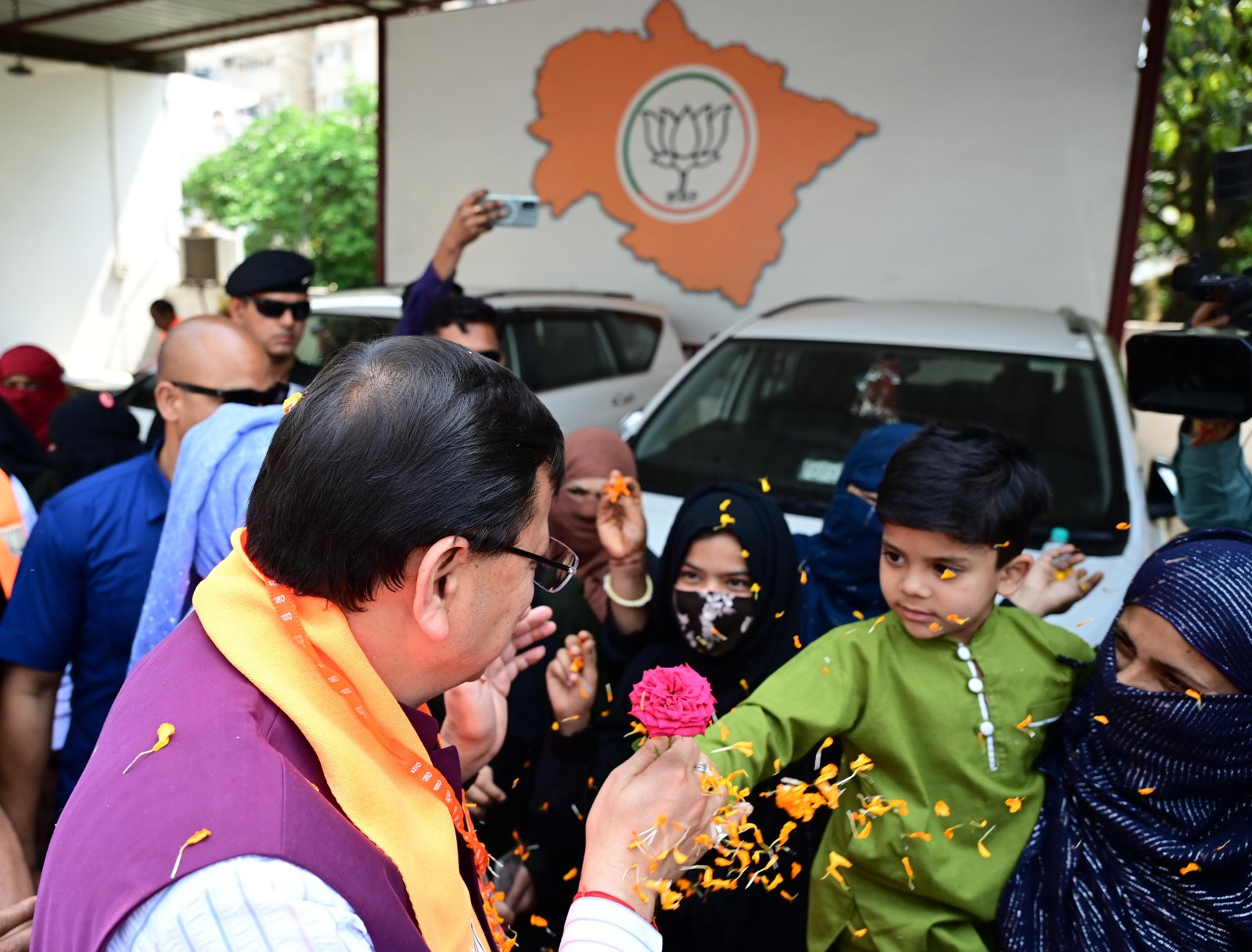देहरादून : भाजपा मुख्यालय में वक्फ संशोधन जनजागरण कार्यशाला के दौरान मुख्यमंत्री पुष्कर सिंह धामी का मुस्लिम महिलाओं द्वारा पुष्प वर्षा कर स्वागत किया गया। इस दौरान उनके द्वारा सीएम माध्यम से वक्फ कानून में ऐतिहासिक सुधार के लिए पीएम नरेंद्र मोदी का धन्यवाद प्रेषित किया । वहीं सीएम ने सभी को आश्वस्त किया कि गरीब मुस्लिम वर्ग और मुस्लिम माताओं बहिनों के कल्याण के लिए यह संशोधन मील का पत्थर साबित होगा। हमारी सरकार सुनिश्चित कराएगी कि अवैध कब्जों को हटाकर, वक्फ के असल जरूरतमंदों को मदद पहुंचाई जाए।